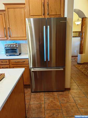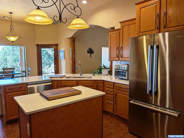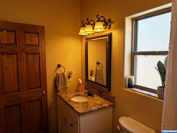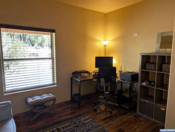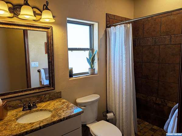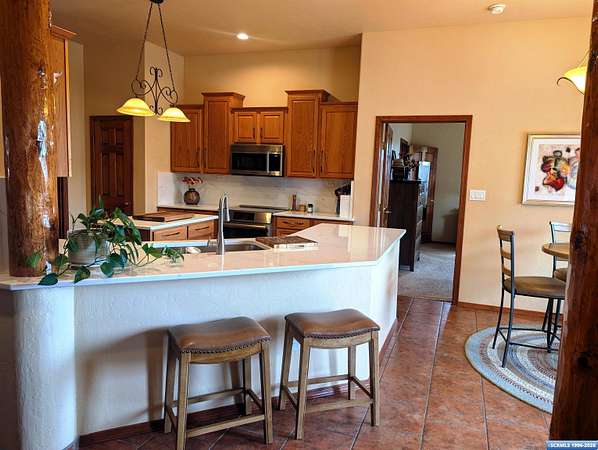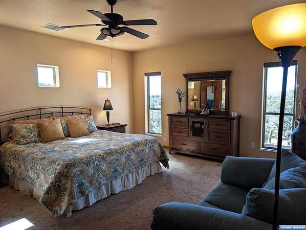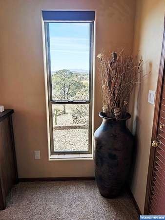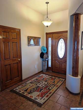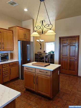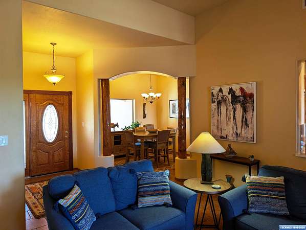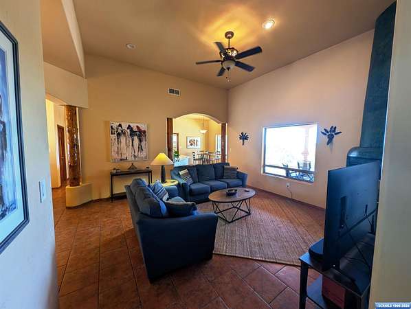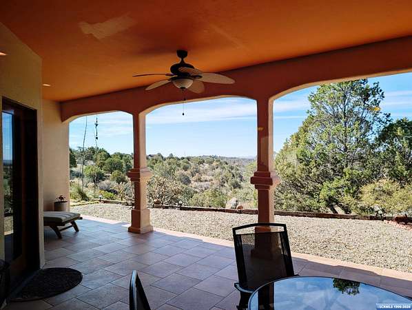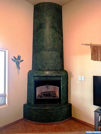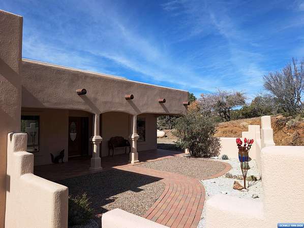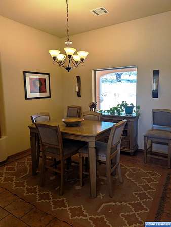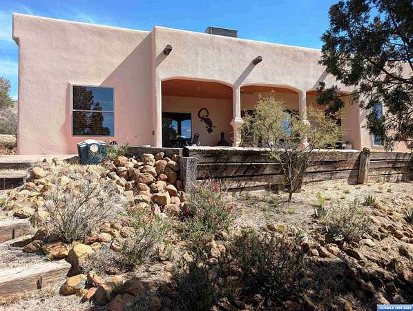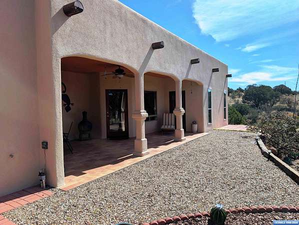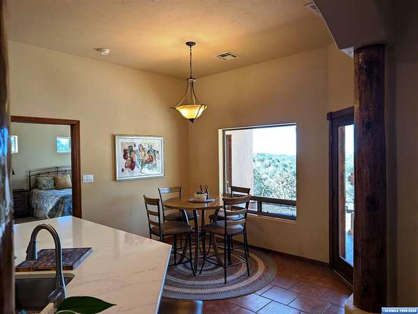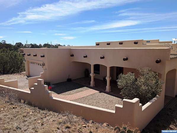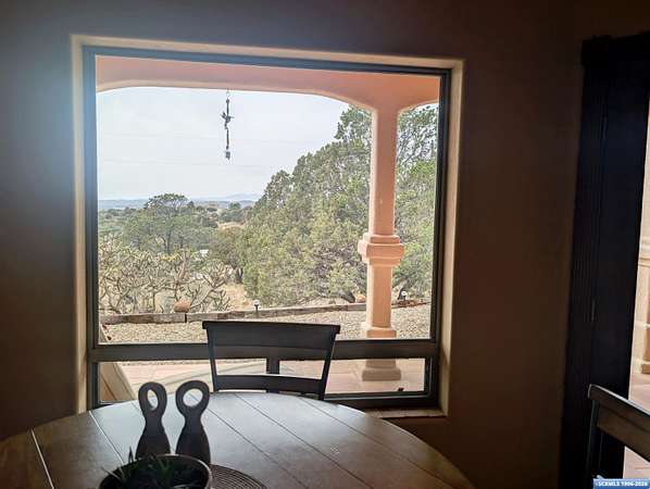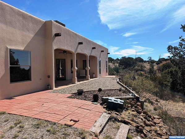 Situated on a secluded 4-acre lot just outside city limits, this 1,736 sq. ft. Pueblo-style home is near the end of Wendy road, with views of Grant County and Silver City. The interior is defined by traditional architectural details, including natural wood viga columns and warm tile flooring. Updated kitchen with quartz countertops and a full suite of stainless steel appliances, anchored by a Bosch induction range. The floor plan offers a sunlit breakfast nook for quiet mornings and a central dining space that flows naturally into the living room and its gas fireplace. The primary suite is a private retreat, with a walk-in closet and an en-suite bathroom, dual-sink vanity, jetted soaking tub, and separate walk-in shower. Two additional bedrooms provide this split floorplan home options for guests or a home office. Exterior features include a front courtyard and covered back patio. This home has a standing seam metal roof and a dual-unit forced air heating/cooling system.