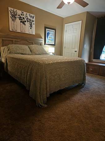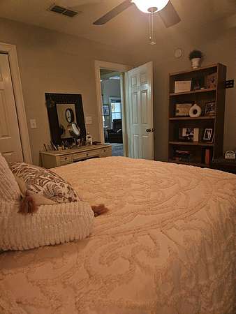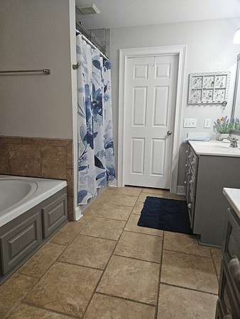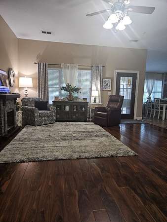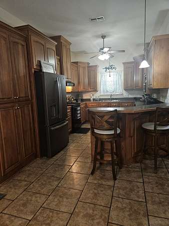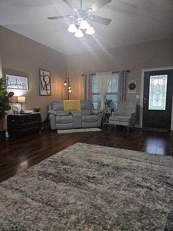 This stunning, immaculate home sits on 1.59 acres in the Woodridge Subdivision and is completely move-in ready. The exterior features beautiful pecan trees and lovely landscaping surrounding the house. Inside, you'll find an open floor plan with high ceilings. The kitchen boasts ample cabinet space, black appliances, plenty of work areas, and a convenient breakfast bar. There's a spacious dining area and a large, inviting family room. The master bedroom is generously sized with charming windows, and the master bath includes two separate vanities, a garden tub, a separate shower, and a large walk-in closet. The back patio is tiled, complemented by an attached composite deck, a privacy fence, and additional fencing around the backyard. This is a must see!!