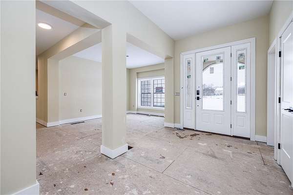 Opportunity knocks! This custom-built home is ready for your finishing touches and personal style. Approximately 75% complete, this property allows you to add flooring, appliances, fireplaces, and a few remaining items to truly make it your own Dream home! Designed with an open floor plan, the great room flows seamlessly into the formal dining area and features a cathedral ceiling, a designated space for a gas fireplace flanked by windows, and an upper transom that fills the space with natural light. The spacious open kitchen showcases white custom cabinetry, a gray center island, custom range hood (to be installed), full pantry cabinet, and is ready for your choice of countertops. A sliding door leads to the future patio area and rear yard. The morning room, open to the kitchen, is boxed out for a gas fireplace and offers additional flexible living space. Convenient first-floor laundry includes a stainless farmhouse sink, along with a powder room off the main living areas. The owner's suite features a custom tray ceiling, recessed lighting, and a walk-in closet with window. The ensuite bath offers a tiled shower, soaking tub, dual vanities, and a separate water closet. Two additional bedrooms include double closets and center light fixtures, while the main bath features a tub/shower combination and vanity. Additional highlights include a full basement with egress window, sump pump, forced-air hi-effec. furnace, and on-demand water heater. The attic features blown-in insulation, with spray foam insulation in the basement and fiberglass insulation in the walls. A three-car garage completes the package. A fantastic opportunity to own a nearly completed custom home at a great price-bring your vision and finish it exactly the way you want! NOTE: Home is being sold AS-IS Owner will not be completing the home-that will be for you to do! Showings start 2/4/26 at 10am. Delayed negotiations are 2/11/26 at 12PM. OPEN HOUSE Sunday 2/8/26 from 12-1:30 PM No sign at street-sign in house window at end of York Forest on the left.