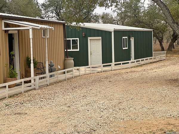Discover your slice of Texas country paradise just minutes from town! This rare 11-acre estate offers endless possibilities for multi-generational living, equestrian pursuits, small-scale farming, or smart passive income. Two custom-updated barndominiums deliver a total of four spacious bedrooms, each featuring its own ensuite bathroom - ideal for extended family privacy, separate rental units, or comfortable guest accommodations. Both homes include energy-efficient Mitsubishi Mini-Split systems for year-round comfort. An additional 340 sq. ft. manufactured home provides flexible guest quarters, caretaker space, or extra rental income potential. The fully fenced acreage is ready for horses, livestock, or hobbies, complete with a large barn and dedicated space for equine facilities. Enjoy a reliable private water well and two septic systems (one updated in 2017). Embrace the peaceful rural lifestyle with easy access to San Antonio-area amenities, shopping, and schools. This versatile property is brimming with opportunity - whether you're dreaming of a family compound, homestead, investment retreat, or hobby farm. Sold As-Is, allowing your vision to take center stage. Prime location, modern comforts, and true country freedom await!