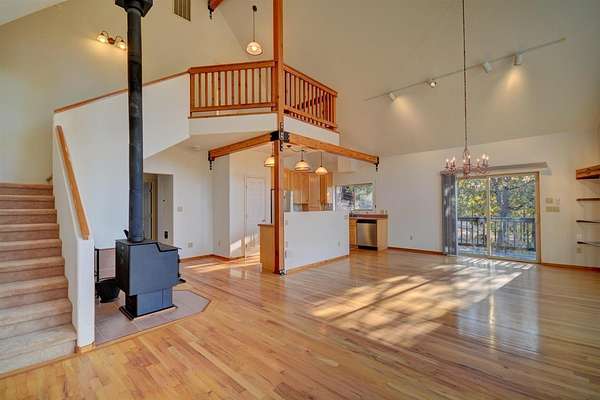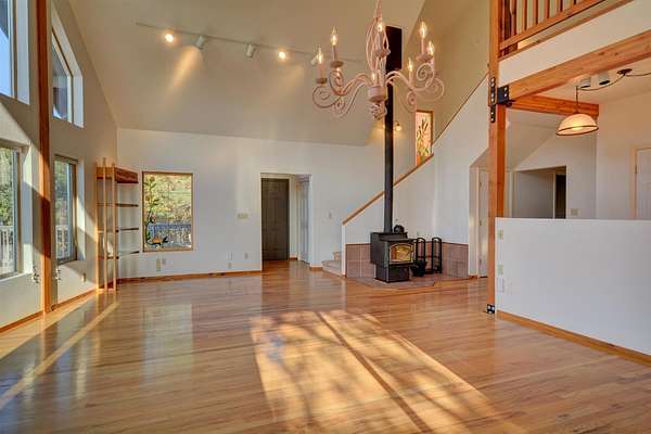 Discover the perfect blend of luxury and country living in this stunning custom-built home, nestled on 11.27 acres in the heart of the Applegate Valley. Backed by BLM land, this property offers unmatched privacy and breathtaking views. The main level features an airy, open floor plan with hardwood floors, soaring ceilings in the great room, and a seamless flow between the kitchen and dining area. Two generous bedrooms and a full bath complete the main floor. The private primary en-suite occupies the entire upper level, providing a peaceful retreat with panoramic vistas and a large walk-in closet. Outdoor living is a dream with an expansive front deck perfect for entertaining. The property is fully equipped with an irrigated yard, fruit and nut trees, and a chicken coop. Hobbyists will appreciate the massive 1,792 sq. ft. shop, which includes a certified woodstove and an insulated, climate-controlled finished space upstairs--ideal for an office, studio, or guest quarters. Complete with a full fire suppression system and ample RV parking, this property is a rare find.