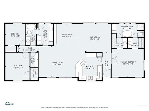 - Bath-Master, Bed-Master Main Level, Breakfast Bar, Double Vanity, Family Room, Laminate Counters, Split Bedroom