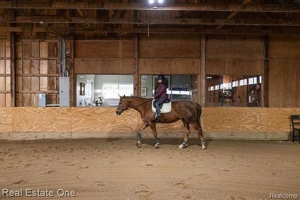 An extraordinary equestrian estate set in a breathtaking natural landscape. Cross the Huron River to reach your own private retreat, where over $1 million in upgrades have been completed within the last five years. The property is thoughtfully designed for both function and comfort, featuring a 60' x 150' indoor riding arena and a total of 22 spacious 10' x 12' stalls. The barn includes a well-appointed observation room with a full bath, along with an office, tack room, and dedicated kitchen area. Additional highlights include a custom greenhouse, a poultry barn, and raised garden beds, offering endless opportunities for hobby farming or sustainable living. Outdoors, you'll find a large riding arena, picturesque trails, and three expansive pastures with all new fencing. The main residence overlooks the river, providing peaceful views and direct access for kayaking or canoeing. A beautifully finished 1,300 square foot guest house includes a full kitchen, bath, and large screened porch. All with serene views of the surrounding pastures and river. Make sure to watch the video tour attached to the listing. Ideally located near shopping and dining, this property offers the rare combination of convenience and complete seclusion-an exceptional place to call home. Please do not enter the property without a confirmed appointment.