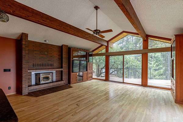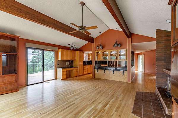 What a view!! Country living at its finest! Check out this gorgeous 6 bed, 5 bath home on 6+ acres. This private little ranch offers a 4200 sq ft heated shop with electricity and concrete floors with an upper and lower level, both accessible from the outside. There is a wood shop on the end of the shop, as well. New roof on house 2023, 4 remodeled bathrooms, plenty of storage space, master on both floors, two kitchens, walk out basement, vaulted ceilings with exposed beams on main, 4 fireplaces, formal dining and living room spaces, and new deck that runs the whole length of the house in the back and one side.Two furnaces, two A/Cs House is electric, shop is propane. Barn has 6 stalls with auto heat water and rubber mat floors, concrete aisle, insulated tack room. Quiet privacy at the top of Paradise Ridge! Make this amazing property yours!