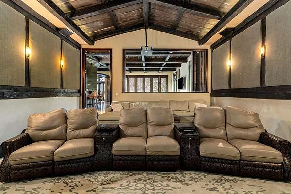 This extraordinary 200-acre estate rivals any state park of Tennessee with dualing 35' waterfalls feeding over a mile of creek frontage filling Center Hill Lake. Just 70 minutes from the Nashville airport or 25 minutes from a regional airstrip, the beauty of nature is melded with luxury and entertainment featuring a 9,300 square foot main house, 3,700 square foot guest house, and entertainment barn with basketball court and big screen. The main home situated above the dualing falls features imported finishes and handcrafted details throughout. From a mosaic-tiled entry and custom stained-glass windows to solid mahogany doors and hand-hewn beams, this home exudes craftsmanship. Wide plank black walnut and reclaimed heart pine floors, Venetian plaster walls, and carved stone accents bring warmth and elegance to every room.