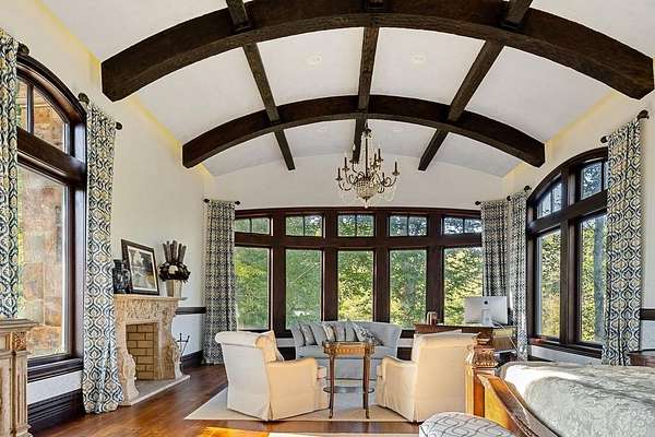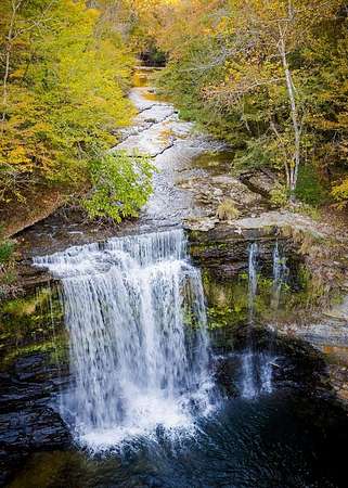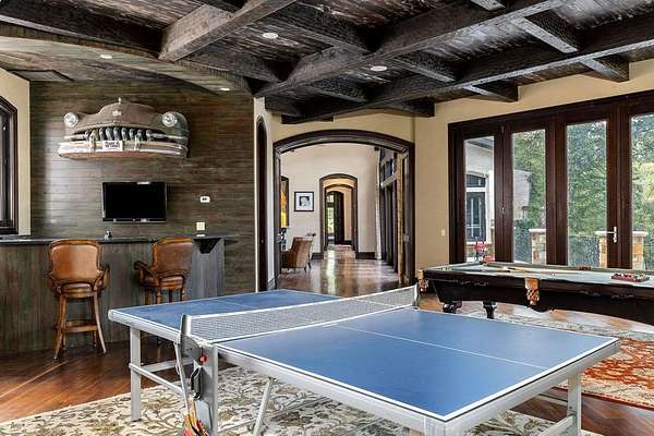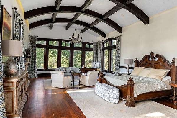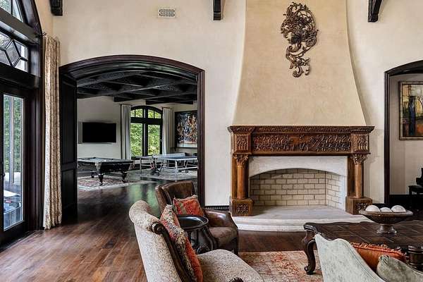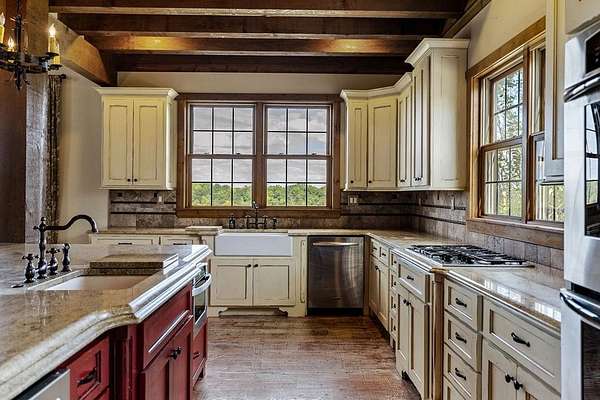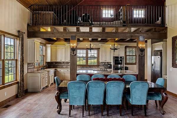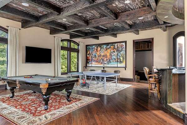 This extraordinary 200-acre estate rivals any state park of Tennessee with dualing 35' waterfalls feeding over a mile of creek frontage filling Center Hill Lake. Just 70 minutes from the Nashville airport or 25 minutes from a regional airstrip, the beauty of nature is melded with luxury and entertainment featuring a 9,300 square foot main house, 3,700 square foot guest house, and entertainment barn with basketball court and big screen. The main home situated above the dualing falls features imported finishes and handcrafted details throughout. Froma mosaic-tiled entry and custom stained-glass windows to solid mahogany doors and hand-hewn beams, this home exudes craftsmanship. Wide plank black walnut and reclaimed heart pine floors, Venetian plaster walls, and carved stone accents bring warmth and elegance to every room.