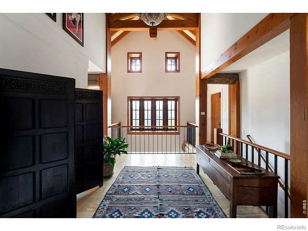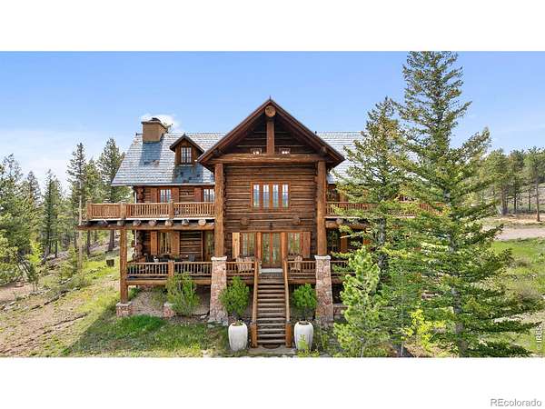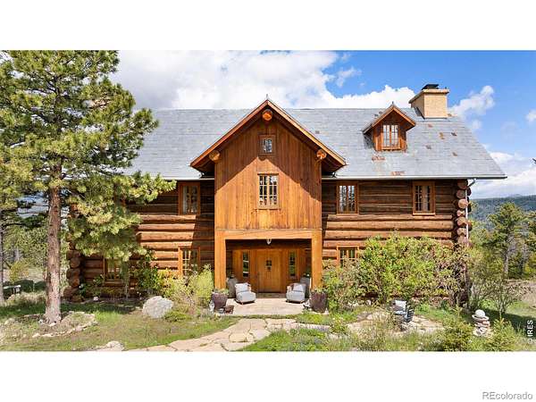 Perched within the storied hills of Boulder County's Gold Hill region, Ashley House is an extraordinary expression of architectural mastery and artisanal craftsmanship. Conceived and constructed by acclaimed log home builder Ed Shure, this exceptional residence rests on 144 pristine acres of alpine serenity; a private mountain retreat where nature and design exist in seamless harmony. Drawing inspiration from both European refinement and the rustic elegance of log cabin living, the home features an exquisite selection of bespoke finishes. Towering 22-inch spruce logs sustainably harvested from Yellowstone National Park anchor the structure with both strength and beauty. Inside, antique French Provincial doors, four hand-crafted fireplaces, and a curated mix of materials imbue each space with timeless sophistication. Wrapped in the stillness of the surrounding wilderness, Ashley House invites a life of quiet luxury. Expansive balconies frame sweeping views of the Continental Divide; Colorado's iconic mountain peaks, offering a daily immersion into nature's grandeur. While profoundly private, the residence lies moments (walk or bike) from the charming Gold Hill community and just 30 minutes from the heart of Downtown Boulder. Don't miss the historic cabin, great space for a caretaker. Ashley House is not simply a home it is an estate, a living work of art, a mountain sanctuary, and a legacy property to be cherished for generations.