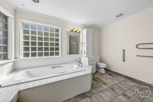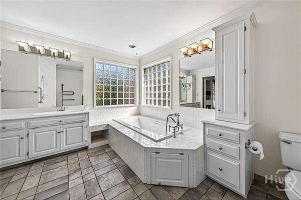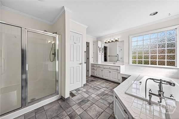 - Bathtub, Breakfast Area, Breakfast Bar, Main Level Primary, Separate Shower, Tray Ceiling(s), Vanity, Vaulted Ceiling(s)