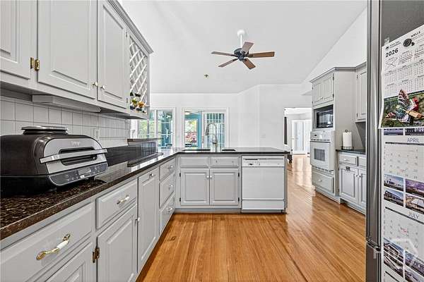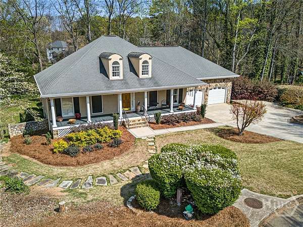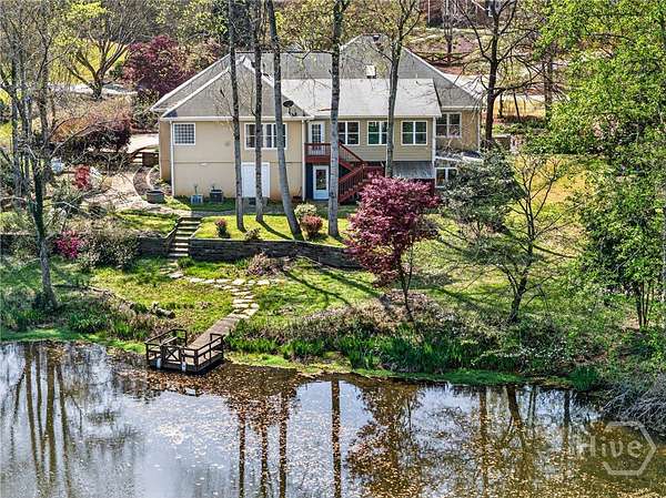 Tucked away on over 2 private acres in the heart of Watkinsville, this 3,000+ square foot home blends timeless Southern charm with everyday functionality-just minutes from downtown, Wire Park, and a stone's throw from the new Thomas Farm Preserve. The main level offers true one-level living with a spacious primary suite, two additional bedrooms, and open, light-filled living spaces featuring vaulted ceilings, hardwood floors, and a seamless flow from the living room to the kitchen. The kitchen is well-appointed with generous cabinetry, solid surface countertops, and a large island perfect for gathering. Downstairs, you'll find even more flexibility with a full bedroom and bathroom, plus a versatile flex space that can serve as a fifth bedroom, home office, gym, or media room. The terrace level also opens to additional screened-in porch space-ideal for relaxing or entertaining year-round. Step outside and the property truly shines. The backyard offers a peaceful, almost "Masters-inspired" setting with mature trees, natural landscaping, and tranquil water views-creating a private retreat that feels worlds away while still being incredibly convenient. Located just a short walk to Thomas Farm Preserve and only minutes to downtown Watkinsville and Wire Park, this home offers the perfect balance of privacy, space, and accessibility.