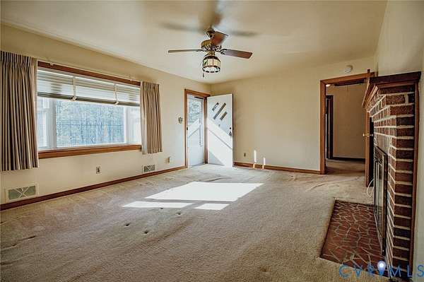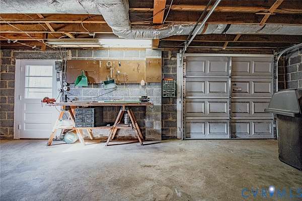 Charming brick rancher with walk-out basement offering timeless character and plenty of potential! Built in 1959, this 1,296 sq ft home features 3 bedrooms, 1 full bath, a spacious living room with fireplace, and a dining area just off the living space. Hardwood flooring is found in all bedrooms, with additional hardwoods under the carpet in the living room waiting to be uncovered. The kitchen connects conveniently to a unique bonus room with built-in shelving on three walls perfect for storage, pantry use, or a creative workspace. The full walk-out basement provides excellent functionality with a 1-car garage, workshop area, concrete shower, and laundry space. Situated on a well-located lot in Chesterfield County off Beach Road, this home offers solid construction and great bones, ready for your personal updates and improvements.