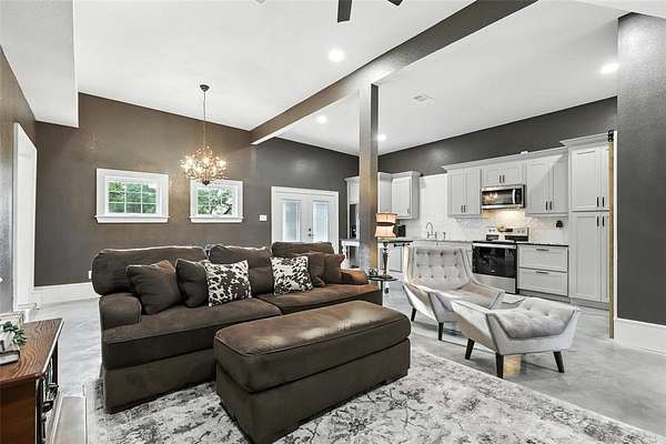 Come for the charm -- stay for the views. Perched on a hill just outside Burleson city limits, this fully renovated Colonial Farmhouse offers 3148 sq ft of living space and the freshing renovated barn offers 2000 sq ft of living space. Here you will find arguably the best views Burleson has to offer. The main home features 3 bedrooms, 2.5 baths, and a kitchen any chef would dream of -- complete with an oversized island, quartz countertops, and a commercial-grade refrigerator. Enjoy timeless character throughout, with crown molding, hardwood flooring, a gas fireplace, and many custom details. The reimagined floor plan also includes an upstairs sitting area and a cozy in-home library. The first floor primary suite provides privacy and comfort with plush carpet, dual vanities, a spacious walk-in shower, and his and her closets - including a stunning wardrobe space perfect for any fashion lover. This home was built for entertaining -- and so is the pool. The massive 15 x 25 ft saltwater pool is 9 ft deep, offering the perfect summer escape. The charming barndominium functions as full-time living quarters or a highly comfortable guest house. The upstairs hayloft features a dramatic window wall facing west -- the perfect spot to watch breathtaking Texas sunsets. Inside, you'll find a primary bedroom with sitting area, living and dining space, a full kitchen, washer, dryer connections, and a beautifully tiled bathroom. No details were overlooked here. Completed in 2022, the barndo includes updated HVAC, septic, flooring, appliances, and windows for worry-free living. The roof on both the main home and barn was replaced in June 2025. Enjoy daily views of your neighbor's exotic animals and embrace peaceful country living -- all just 5 minutes to shopping, 10 minutes to Chisholm Trail, and 30 minutes to Fort Worth. Take a tour and stroll the private trail toward the back of the property - you might just spot a longhorn, zebra or other exotic animal from the neighboring ranch.