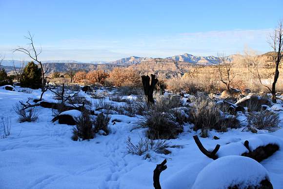 Climate on Grand Mesa varies by elevation. This property, which is relatively lower in elevation, tends to be a bit warmer and receive less precipitation than at the top of the Grand Mesa, which rises to nearly two miles above sea level.