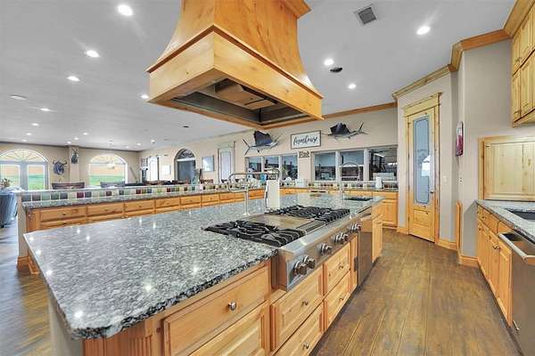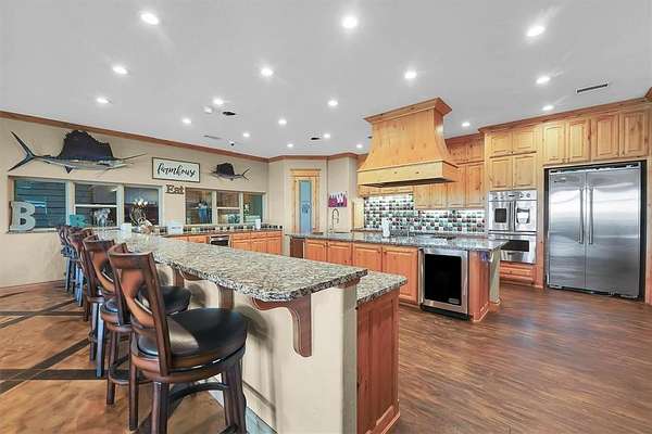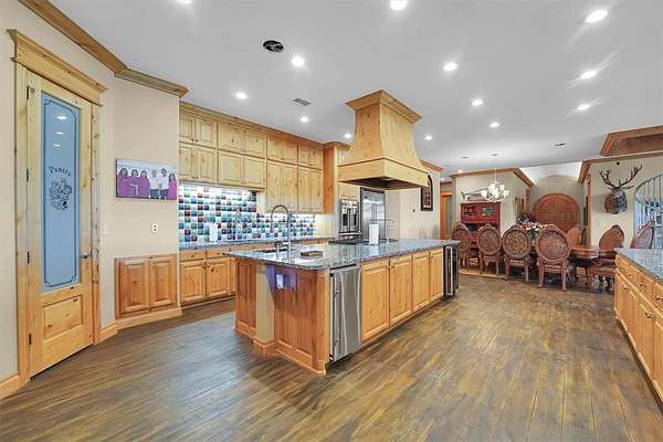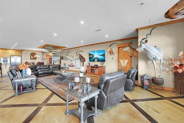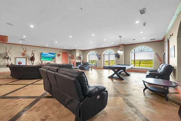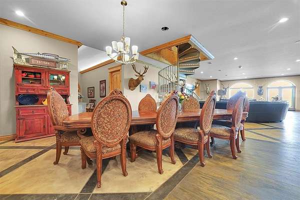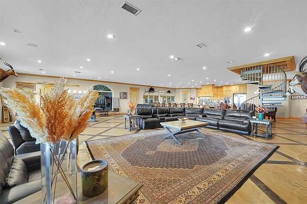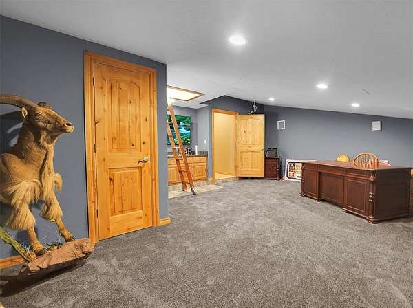 ! SUBSTANTIAL PRICE REDUCTION FOR QUICK SALE ! INSTANT EQUITY ! Step into this sprawling 9,000+sqft custom barndominium with a massive shop, 155 acres and stocked pond. The gourmet kitchen features top-of-the-line Viking appliances, including a double wall oven, gas stove and griddle, beverage fridge, ice maker, and two dishwashers along the radiant heated floors in both kitchen and dining. Home is equipped with geothermal HVAC, solid knotty alder wood throughout and stamped concrete floors. Master suite offers everything from dual fireplace, hot tub, radiant heated floors, bidet, 9'x20' walk-in closet each and a 20'x20' safe/vault room. Also downstairs two 20'x20' bedrooms full of character-one with the a fireman's pole, the other featuring a rock climbing wall to the upstairs playroom. Venture upstairs via custom built spiral staircase to the theater room with 100+ inch projector screen, wet bar, candy station and immersive sound system. Additional features include two bedrooms, full bath, office with wet bar and lookout and a playroom with a lookout. The fully insulated 7300 SqFt. shop features, 24' ceilings, 16ft and 14ft overhead doors, a 12 ton AC system and a 9'x 51' carpeted balcony with a wet bar overlooking the space. Fenced with barbed wire, sorting pens with a head squeeze stall, panel pens, 2 RV hookups with water and sewer and an outdoor kitchen. This property is anything but ordinary! If you're looking for something truly one of a kind, this ultimate barndominium is calling your name. Car Lifts are excluded from sale.