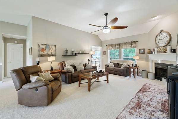 Step inside to find a light-filled interior with an open and inviting layout designed for both everyday living and effortless entertaining. The main living area features hardwood floors/vaulted ceilings/fireplace—customize as needed, creating a warm and welcoming atmosphere. The kitchen offering ample space for cooking, gathering, and hosting.