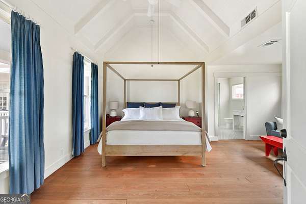 - Beamed Ceilings, Bookcases, Double Vanity, High Ceilings, In-Law Floorplan, Master On Main Level, Separate Shower, Soaking Tub, Tile Bath