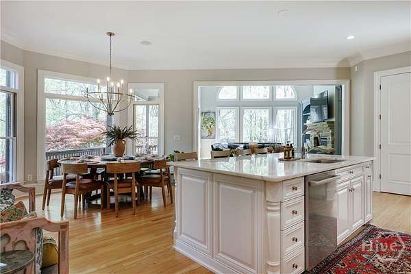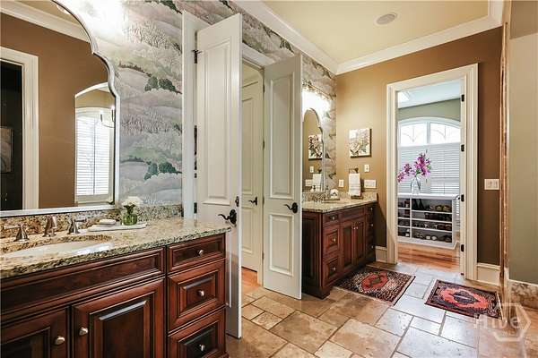 Welcome to 1051 Moss Creek Terrace, a gorgeous, 6,800 sq ft home in Oconee County on a private 2.18 acre lot. Boasting prime location in Watkinsville, this handsome stone and brick home features a resort-style pool, 4th car garage, and stunning finishes throughout, all while being right next door to Athens, GA. Inside, soaring ceilings, gorgeous color palettes, oak floors, heavy trim, built-in bookcases and more greet you-the main level includes an expansive primary suite, two living spaces (each with a fireplace), dining room, a true chef's kitchen, office, laundry and more. The main living room features coffered ceilings and is located next to the beautifully painted dining room. The kitchen includes an 8-burner gas range, Subzero refrigerator, two islands, and stunning white granite counters. A coffee and cocktail bar adds convenience, and a second living space with cathedral ceilings and fireplace is off the kitchen. A dedicated office, powder room and laundry showcase beautiful wallpaper. The primary suite is a true retreat: the large bedroom leads to a travertine bathroom and elaborate dressing room. Three bedrooms (each with an ensuite bath) and large bonus room are located upstairs. The terrace level features a fifth bedroom and full bath, wet bar and multiple living spaces perfect for a media/game room, studio and more. While the main level has an attached three-car garage, the terrace level features a hidden 4th car garage that is perfect for a trophy car, boat or golf cart. The backyard features the best of all-a beautiful gunite pool and patio with waterfall fountain, perfect for this upcoming summer. A covered porch off the main level leads to the pool, and the property backs up to quiet woods and a small creek. Zoned for Oconee County schools and only 1.5 miles to Butler's Crossing, 4.4 miles to Wire Park, 7 miles to the University of Georgia and 10 miles to Piedmont Athens Regional Hospital, plus easy access to 316/78 for Atlanta commutes.