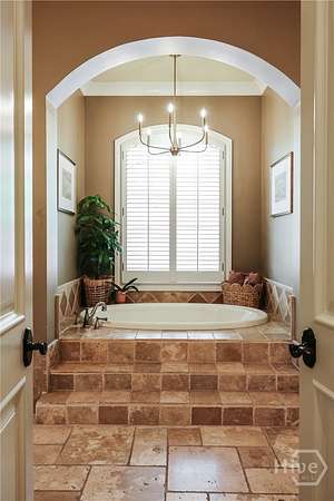 - Breakfast Area, Built-In Features, Cathedral Ceiling(s), Ceiling Fan(s), Double Vanity, Entrance Foyer, Garden Tub/Roman Tub, Gourmet Kitchen, High Ceilings, Jetted Tub, Kitchen Island, Main Level Primary, Pantry, Primary Suite, Separate Shower, Sitting Area in Primary, Tray Ceiling(s), Vaulted Ceiling(s), Wet Bar, Wired For Sound