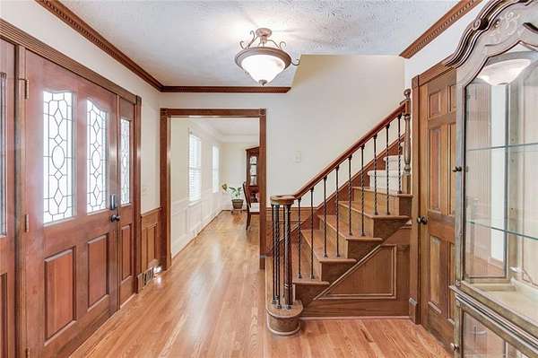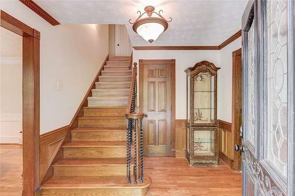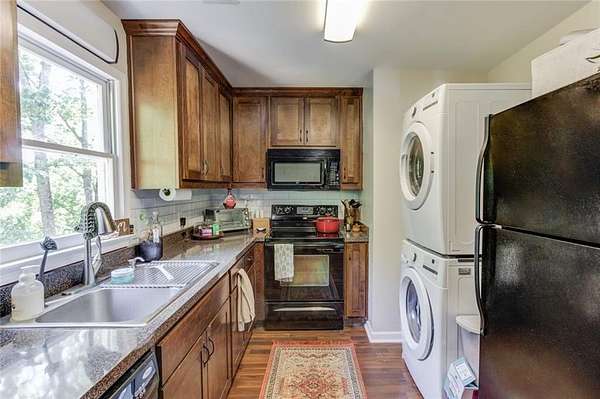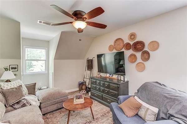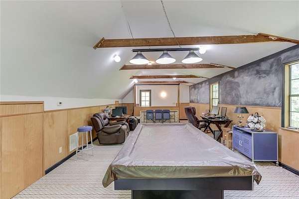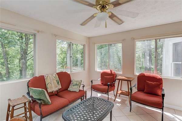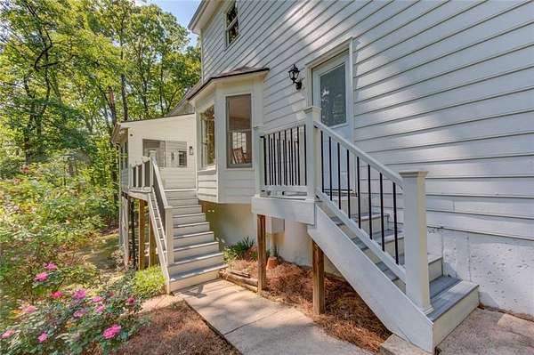 Rare opportunity to own an amazing Colonial style home in Sugar hill on 6.21 private acres with access to shared spring fed lake where you actually own the water! This unique 2 story home with detached 3 car garage with office/rec space also includes a income producing separate apartment above the attached garage. As soon as you step foot on relaxing front porch you will know this is home. Main entry foyer greets you with hardwood floors and a coat closet and the stairway with iron balusters and hardwood step treads that transition to carpet. There is a freshly painted dining room to your left with chair rail and crown molding. Double doors off the main foyer take you into the Family room with a brick wood burning fireplace and chair railing that surrounds. The bay window lets in lots of natural light and provides ample seating. There is a covered sunroom that provides extra living area and looks out onto the private wooded acreage. The huge freshly painted kitchen features granite counter tops, tile backsplash and stainless appliances. There is a sliding door pantry that leads into the breakfast room that overlooks the backyard with lots of natural light. Laundry room features lots of space with 2 closets and overhead cabinetry. Back deck access from the sunroom or the breakfast room. Half bathroom between kitchen and living area completes the first floor. Upstairs Primary bedroom is large with access to a Juliet balcony that overlooks the side yard. Primary Ensuite features solid wood cabinetry with dual vanities and walk in tiled shower with shampoo niche. There are 3 secondary bedrooms upstairs. Secondary bath upstairs features double vanities and shower/tub combo with plenty of counterspace. Basement features finished living area with LVP flooring with a full bathroom with tiled shower and sliding glass door. There is another bedroom. Unfinished basement shop with a roll up door for all your projects! To the left of the attached garage you will find a door that leads up to the apartment. The 1bed/1bath apartment is exterior entry only and features a full kitchen with wood cabinetry, dishwasher, stove and microwave and stackable washer/dryer. This flows into the cozy Living/dining area. Bedroom and full bathroom complete the apartment. The detached 3 Car garage can hold all your toys or projects or provide extra vehicle storage! Upstairs you will find a huge finished bonus area that could be a separate office or hang out room. Access to the lake is a pretty walk through the hardwood path with deer bounding through the property with over 100 feet of water footage on the property. Properties like this do not come available often in Sugar Hill so do not miss your chance to own in a great school district close to the lake, shopping and schools! *square footage number includes house, finished basement and apartment* The apartment bedroom is not included in the bedroom count of the main house.