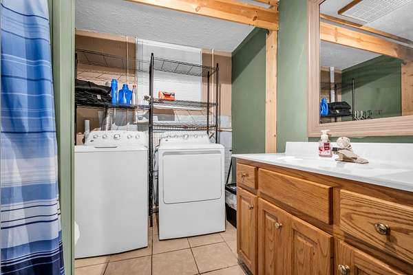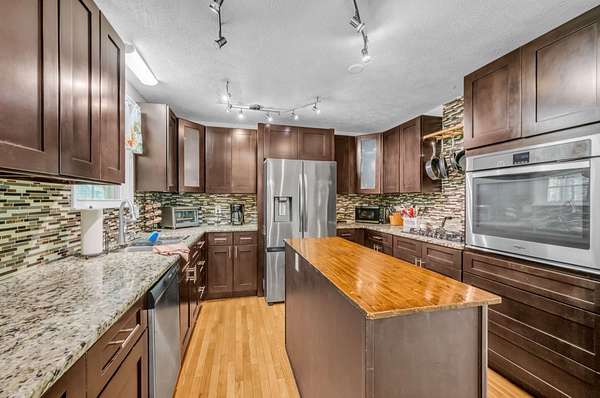 The spacious kitchen and bathrooms have been refreshed, and the entire home benefits from a new water softener system for added comfort and convenience.