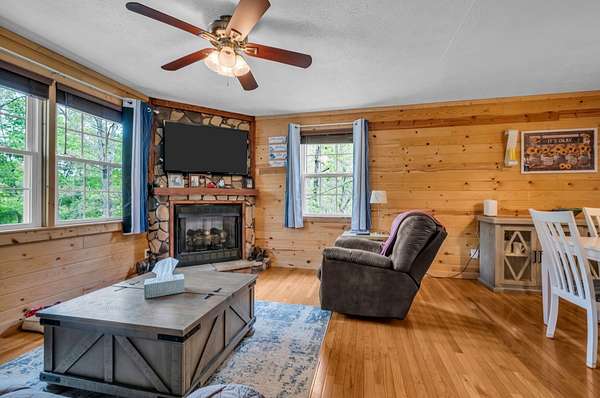 Step inside to find warm hardwood floors throughout the main living areas, creating a welcoming and timeless feel. The home has been thoughtfully updated with modern touches while preserving its charming character. A highlight is the inviting fireplace area, perfect for cozy evenings and family gatherings.