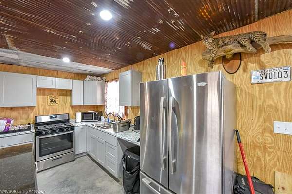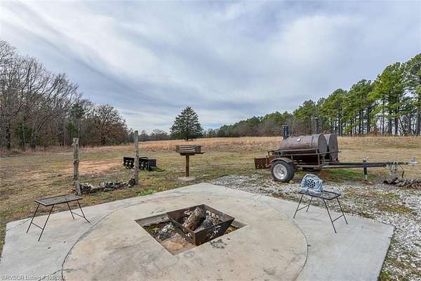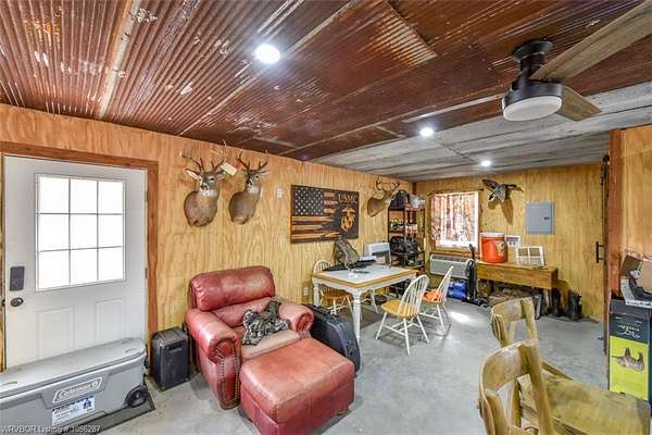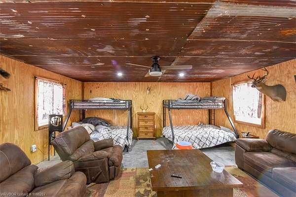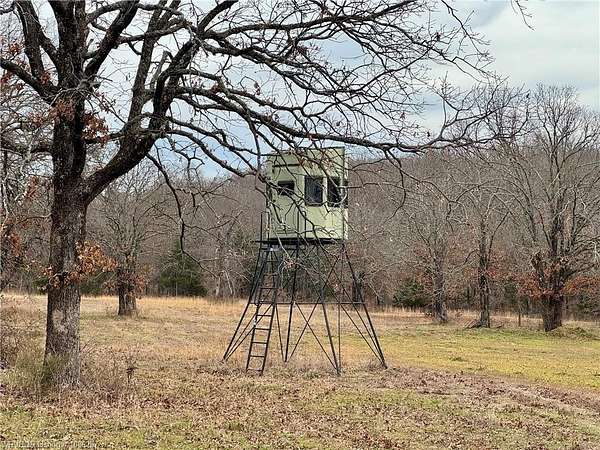 Welcome to a rare opportunity to own approximately 157 acres of prime Oklahoma hunting and recreational land - a true legacy property built for sportsmen, investors, and outdoor families alike. This remarkable tract features three natural ponds and two winding creeks, creating exceptional wildlife habitat and year-round water sources. The land is already outfitted with deer blinds, feeders, and trail cameras, making it fully prepared for immediate use. A potential duck slough currently under development further expands the property's waterfowl potential. At the center of the ranch sits a well-built hunting cabin offering an open living and dining layout, full kitchen, and full bathroom. Designed for durability and comfort, the cabin includes concrete floors, metal roof, zoned HVAC, and is serviced by a deep 600-foot water well. An attached carport provides covered parking for ATVs, tractors, and hunting rigs, while a nearby fire pit sets the stage for unforgettable evenings at camp. The entire property is fully fenced and currently generates income through hay production, averaging 60-80 round bales annually. With Interstate 40 frontage, access is effortless while still preserving the privacy and tranquility of rural living. Located just minutes from the Arkansas River, Lake Tenkiller, and Sequoyah National Wildlife Refuge, and within the Vian School District, this property combines convenience, recreation, and investment potential in one extraordinary offering. Whether your vision includes trophy whitetails, potential duck hunting, cattle, hay production, or a private family retreat - this land delivers.