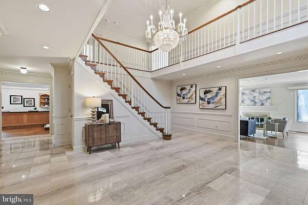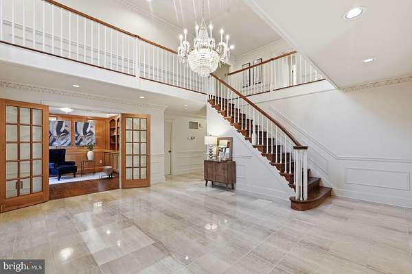 A rare offering in one of Potomac's most coveted close-in locations, this extraordinary estate is gracefully set on nearly 2.5 acres of breathtaking, park-like grounds. Beyond brick pillars and a sweeping circular drive, the residence unfolds as a private sanctuary-where timeless architecture, exceptional craftsmanship, and natural beauty converge. A gentle creek meanders through the property, crossed by a charming footbridge, evoking the tranquility of a country estate while remaining just moments from the charm and convenience of Potomac Village. Encompassing almost 10,000 square feet of refined living space, the home has been thoughtfully designed to accommodate both grand-scale entertaining and intimate daily living. Elegant proportions and exquisite decorative millwork define the interiors, with crown moldings and custom built-ins lending a sense of enduring sophistication throughout. At the heart of the home, a dramatic two-story marble floor foyer creates a striking first impression and anchors the flowing floor plan. Formal living and dining rooms offer graceful settings for entertaining, with hardwood floors and a wood-burning fireplace, while the living room is ideally suited for a grand piano. The updated kitchen, featuring a center island and generous breakfast area, opens seamlessly to the coffered-ceiling family room, complete with fireplace and wet bar. Expansive multi-level decks extend the living space outdoors, offering serene views across the lush rear grounds and sparkling creek beyond. A richly paneled library with French doors and custom cabinetry provides a warm and inviting retreat, complemented by an adjacent office or optional main-level bedroom with a full bath-perfect for guests or multi-generational living. Additional main-level amenities include a powder room, mudroom with laundry, secondary staircase, and access to an oversized three-car garage. The upper level reveals a gallery overlooking the foyer, an ideal backdrop for art and cherished collections, and features six bedrooms and four beautifully appointed baths. The primary suite is a true private haven, offering a sitting room, wet bar, expansive walk-in closets, and a private balcony overlooking the grounds-perfect for morning coffee or evening repose. The spa-inspired marble bath features a steam shower and jetted tub, creating a resort-like experience at home. Designed for memorable gatherings, the lower level is an entertainer's dream, featuring a full bar, expansive recreation room with fireplace, game or fitness room, second kitchen, wine cellar, bedroom, and full bath. Walls of glass invite natural light and open to the patio and landscaped rear yard, seamlessly blending indoor and outdoor living. Perfectly positioned near Potomac Village, scenic walking or biking path along Falls Road, Great Falls Park, and the C&O Canal, this exceptional estate also offers effortless access to Bethesda, Washington, DC, and Northern Virginia. This is more than a home-it is a lifestyle of elegance, privacy, and natural beauty, offering a rare opportunity to own a legacy property in the heart of Potomac. *Features*Whole House Generator*Two Gas HWH 2016, 2019*Two Zone Gas Furnace 2015, 2016*Two Zone AC 2013, 2015*Roof 2004*Irrigation System*View Virtual Tour for Video***