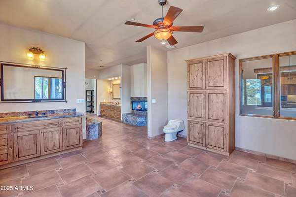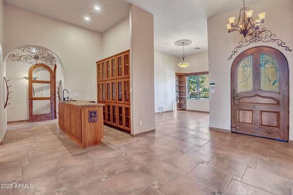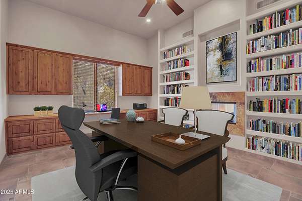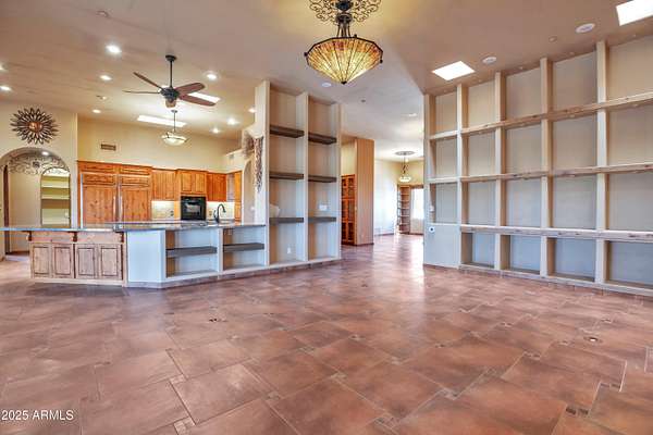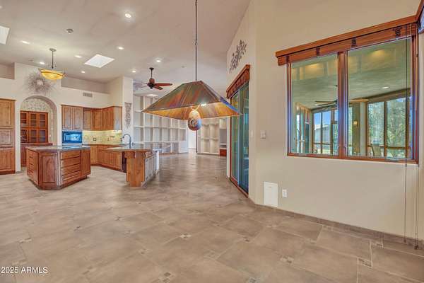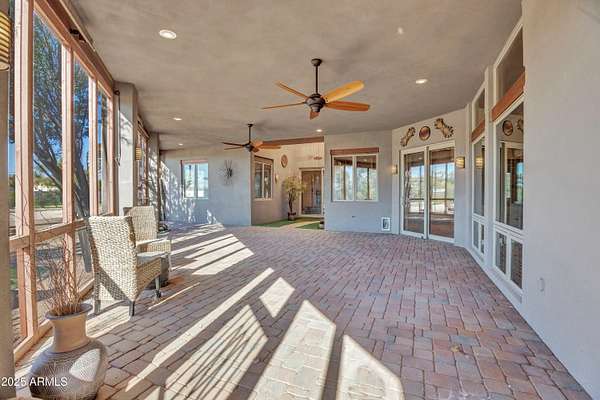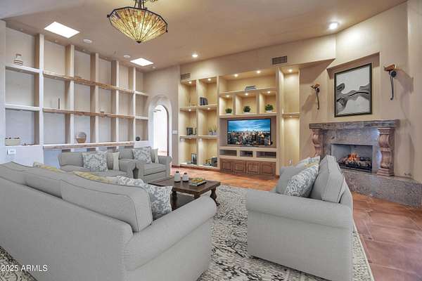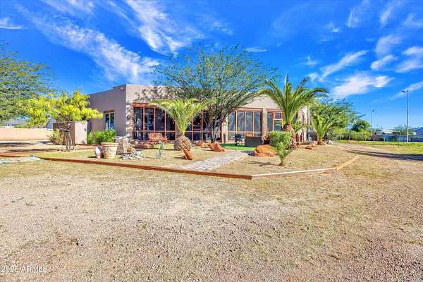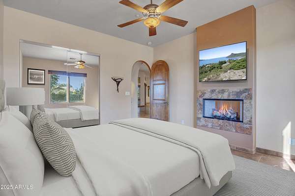 Custom Territorial Estate on 2.5 Private Acres - Includes Guest House, Barn, RV Garage & Lighted Riding Arena Discover this exceptional 4,000+ sq. ft. custom home featuring timeless Territorial architecture and expansive outdoor amenities. The inviting Great Room offers abundant natural light and seamless indoor-outdoor living. The Primary Suite includes a luxurious bath and a two-way fireplace, while the Second Bedroom also features its own two-way fireplace for added comfort and charm. A Chef's Kitchen showcases a large island, granite countertops, an extra-large built-in refrigerator, and a Butler's Pantry with wet bar, perfect for entertaining. The dedicated Office includes custom built-in cabinetry and its own fireplace. Enjoy panoramic mountain vistas from observation Deck.