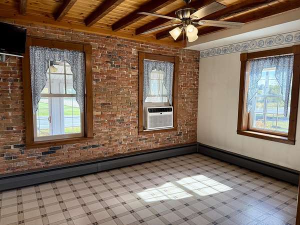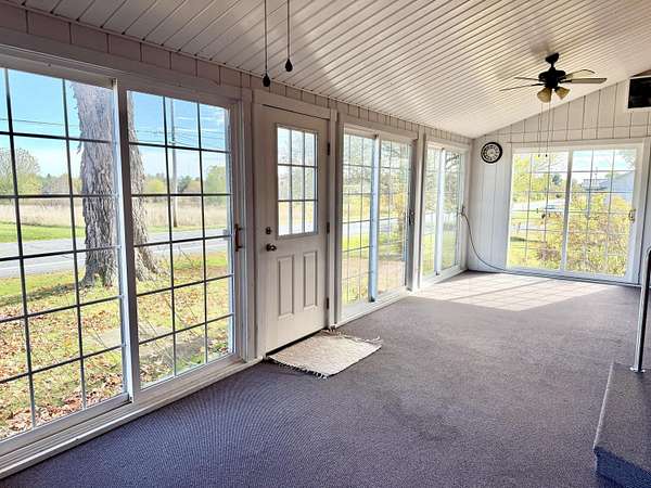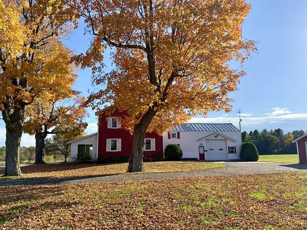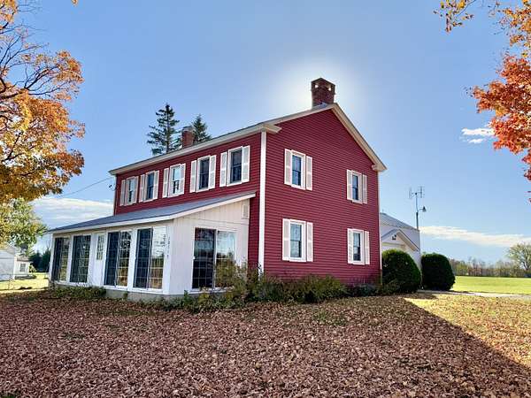 *Now with more land!* This beautifully maintained 1810 farmhouse offers a perfect blend of historic charm and modern comforts. This 4 bedroom, 2 bath home features a glass-enclosed front porch and an attached barn-style garage, set on a picturesque lot adorned with beautiful maple trees. The large eat-in kitchen is truly the heart of the home, complete with abundant cabinet space, pull-out drawers, matching built-ins, a breakfast bar, exposed brick, and rustic beam ceilings. The adjoining dining area makes it ideal for gatherings. The inviting living room features a cozy fireplace and hardwood floors beneath the carpeting, while the east-facing sunroom provides the perfect spot to enjoy morning coffee and watch the sunrise over the barns and land across the road--included with the property! A convenient mudroom with laundry hookup connects the home to the attached garage with a pellet boiler for an alternative heating option. Upstairs, a versatile loft area-formerly a fifth bedroom-serves as a great den or home office. The primary bedroom offers dual closets and hardwood floors. Additional features include a detached two-car garage, standing seam metal roof, and vinyl siding for low-maintenance living. Across the road, an impressive barn and multiple outbuildings sit on an additional 37+ acres-- offering storage, workshop space, and land for your recreational enjoyment. A rare opportunity to own a well-cared-for property with both character and utility! 360 degree virtual tour can be viewed here: