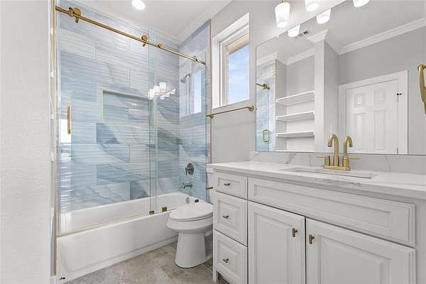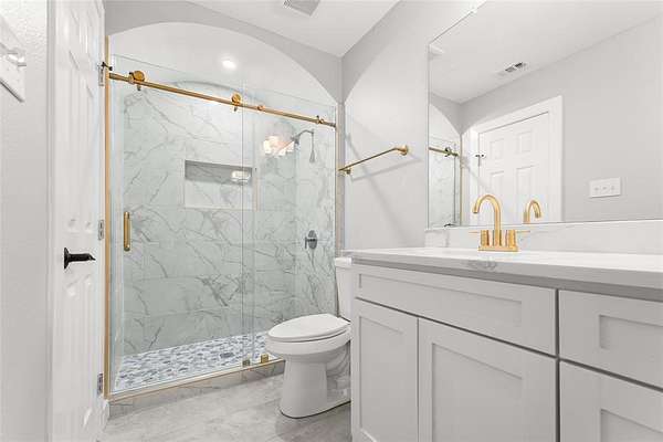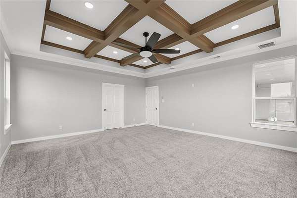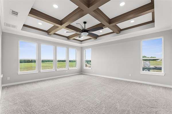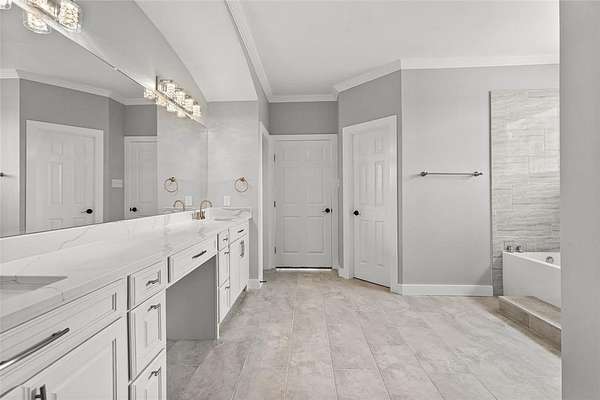 The owner's suite offers a spa-like retreat with a soaking tub, walk-in shower, dual vanities, and an oversized walk-in closet. Each secondary bedroom is paired with its own private bath, ensuring comfort and convenience for family and guests alike. A flexible bonus room with wet bar is perfect for movie nights, a game room, or a second living area.