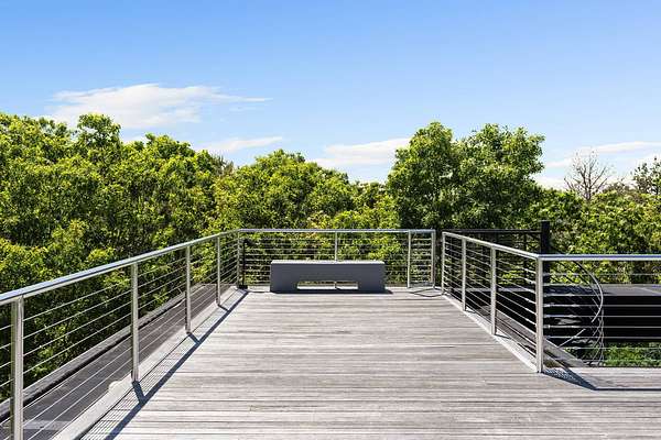 Secreted within a hidden, private Hamptons enclave, minutes from three of the most coveted East End villages, discover "SkyBox," a once-in-a-lifetime opportunity to live in a secluded, published work of modern art, an artist compound like no other. This award-winning Water Mill creation, by the world-renowned team at 1100 Architect, is a hillside sculpture floating effortlessly on close to 10 acres of the highest elevation anywhere in eastern Long Island, affording 360-degree views of lush farmland, the polo fields and the Atlantic Ocean. The home has 4 bedroom suites over three levels of carefully considered details and views from every window. The property also includes a sculptural pool pavilion and a professional clay tennis court that seem to emerge from their natural surroundingsm, plus there is potential opportunity for subdivision. SkyBox, with all its sylvan wonder and jaw-dropping views, refers directly to the Hamptons' history as a retreat for artists and creatives of all kinds. Now you can be one of them. SkyBox spreads out over two floors plus a foyer level, each floor becoming more lavish as you ascend towards the crowning jewel of the rooftop deck. The entry impresses with curved architectural elements, and this floor also encompasses a sophisticated thousand-bottle wine room with integrated tasting table plus laundry and a windowed flex space for a potential gym/4th bedroom. The bedroom level has a spacious primary suite with a separate dressing area and steam spa shower. There is a light-filled landing with a fabulous gallery lounge/media den, plus two spacious ensuite guest bedrooms, currently being used as art studio spaces. This floor is wrapped in an ingenious exterior fiberglass screening, filtering the light gorgeously. The floating staircase takes you up to a truly stunning upper living level, surrounded by floor-to-ceiling windows with motorized sun shades; there are treetop sky & water views in every direction. The central atrium provides dramatic interest, leading to a conversation den, the great room and formal dining. The open kitchen with breakfast nook has built-in cabinetry & luxury appliances. A spiral atrium stair is your portal to the rooftop deck, the ultimate feature of Skybox, with unbelievable panoramic ocean views, a built-in wet bar, and 560 square feet of entertaining space. Other areas of the property include the masterful pool pavilion, also designed by 1100 Architect, beautifully incorporating warm wood with the steel pergola and 15x50 heated Gunite infinity pool and separate spa, evoking a timeless feel of California modernism. There is a chic full pool bath here as well as a separate cabana lounge, outdoor kitchen, & fire pit. Just beyond lies the Har-Tru tennis court with courtside lounge, and a freestanding two-car garage. By far, this is the best value in the Hamptons for improved land with significant architectural pedigree, priced far below replacement value. Potential for further expansion, subdivision or family compound. The location is an East End trifecta: easy access to three prime villages, ocean and bay beaches, and farm fields. Living at SkyBox is like living in a breathtaking work of modern art: now it can be yours.