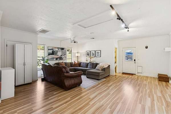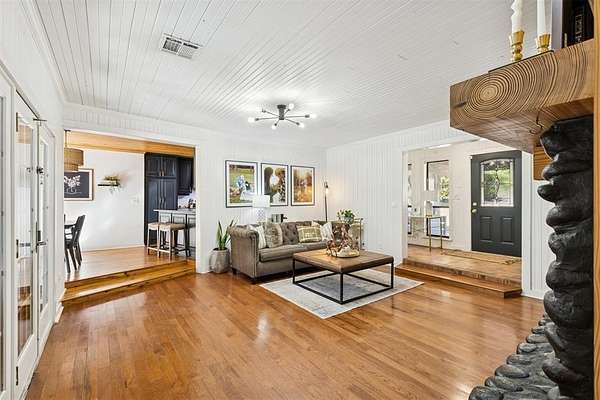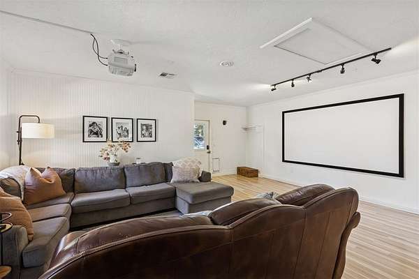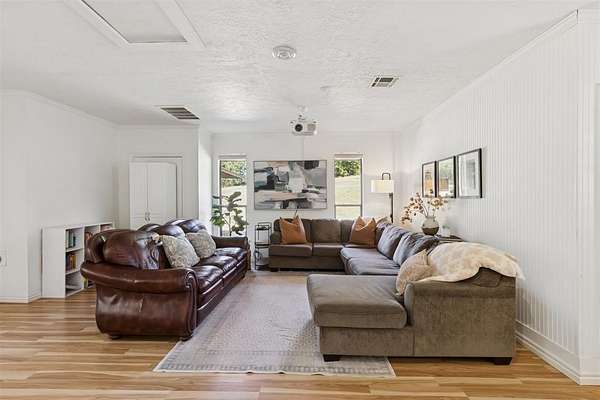 Nestled on a beautiful 2 acre lot, this property offers the perfect balance of privacy and convenience with quick access to I-35. Surrounded by peaceful countryside, the setting is quiet and secluded while still being just a short drive from nearby amenities. The home features a spacious flex room complete with a built-in projector and screen, making it perfect for movie nights, a game room, or an additional entertainment space. Inside, you'll also find a stunning wood-burning fireplace that creates a warm and inviting focal point in the living area, while large windows fill the home with beautiful natural afternoon light. Step outside and enjoy the outdoors from the partially covered back deck or relax on the covered front porch while taking in the peaceful surroundings. The acreage offers plenty of room for chickens and other animals, giving you space to enjoy a more relaxed country lifestyle. The property is also home to mature fruit trees, adding charm and seasonal harvests to this already special setting while combining country living, space, and comfort with convenient access to the interstate.
