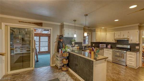 If you’ve been searching for a home that offers abundant living space, comfortable layout, and land with endless possibilities, your search stops here. Ideally located less than 10 minutes from I-77 and I-70 and just minutes from Salt Fork State Park, this spacious property sits in the desirable Twin Oaks neighborhood. Set on 5 acres, this larger-than-life home provides well over 4,000 sq ft of finished living space and a floorplan designed for both function and flexibility. The main level features a welcoming formal entryway, a comfortable primary living area, an oversized kitchen, dining space, bath, laundry room, and a cozy fireplace. A beautiful secondary living room leads directly to an enclosed, heated four-season room—perfect for year-round enjoyment. Upstairs, a spiral staircase brings you to four bedrooms and two full baths, including a master suite with its own fireplace, walk-in closet, and a sectioned bath with a soaking tub. The finished basement adds even more usable space with walk-out access to the lower patio, a full bath, an original laundry area (not currently in use), and an additional room ideal for a bedroom or flex space. Outside, the property continues to impress with a two-car attached garage, two-car carport, in-ground pool, and a pool house with bathroom and shower (currently not in use). A looped concrete driveway provides easy access, and the surrounding acreage brings frequent wildlife sightings and plenty of room to enjoy the outdoors. This property delivers space, comfort, and land with room to grow—an opportunity that doesn’t come around often.