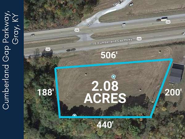 For Lease 2.08 Acres - Cumberland Gap Parkway, Gray, KY (Next to Knox Association of Baptists Exceptional 2.08-acre lot FOR LEASE with approximately 506 feet of road frontage along Cumberland Gap Parkway in Gray, KY. Located next to the Knox Association of Baptists, this flat and expansive parcel offers enormous visibility and high exposure to daily traffic. With no structures or utility hookups currently on site, it's well-suited for mobile businesses, vendor use, signage, or equipment staging. Tenant to verify zoning and intended use. A standout opportunity for businesses needing size, access, and exposure in a prime commercial corridor.