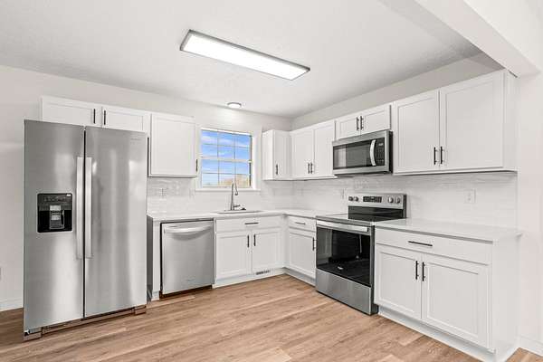 - Built-In Electric Oven, Dishwasher, Microwave, Refrigerator, Stainless Steel Appliance(s)