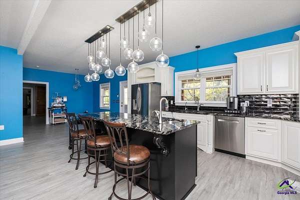 Welcome to a truly one-of-a-kind retreat in Cochran, GA: An extraordinary estate offering the rare combination of luxury living, expansive acreage, and natural beauty. Set on nearly 46 stunning acres, this remarkable property features two large, fully stocked ponds, a beautifully crafted 4,300+ sq ft home, and unmatched privacy surrounded by mature timber and wide open views. The home’s inviting wrap around porch sets the tone for a peaceful lifestyle, perfect for morning coffee, sunset watching, or entertaining family and friends. Inside, the spacious floor plan showcases soaring ceilings, abundant natural light, and high end finishes throughout, including a chef’s kitchen with custom cabinetry, premium appliances, and an oversized island perfect for gatherings. Multiple living areas offer room for relaxation and entertainment, while the oversized bedrooms and spa-inspired bathrooms provide comfort and luxury at every turn. Step outside and experience everything this property offers, from fishing and relaxing by the water, to riding trails, hunting, or simply soaking in the beauty of the land. Massive workshops with roll-up doors provide incredible flexibility for equipment storage, projects, or recreational vehicles, making this property ideal for hobbyists, outdoorsmen, or those seeking a self-sufficient lifestyle. A shooting shack tucked back in the pines offers a perfect spot to safely enjoy your second Amendment rights at your own shooting range. Home features a full size backup generator that can power the entire house, the crawl space is fully encapsulated with dehumidifiers. Whether you’re dreaming of a private family retreat, a recreational paradise, or a forever home with space to breathe, this extraordinary property delivers a lifestyle that simply cannot be replicated. Opportunities like this are rare; don’t miss your chance to own a truly exceptional piece of Georgia, A true legacy estate!