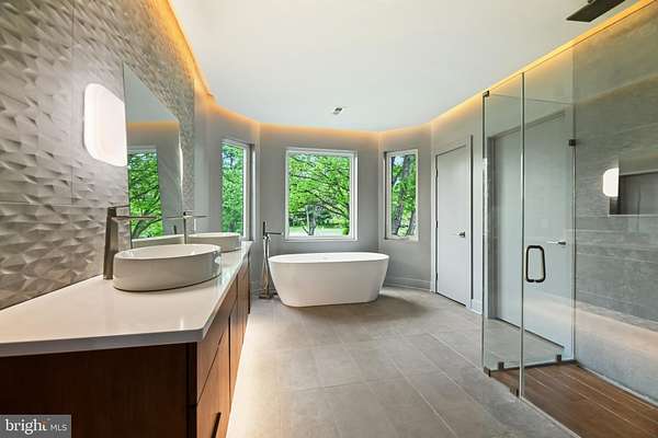 Nestled in Greenspring Valley, an esteemed yet relaxed Baltimore county enclave, the tastefully furnished Stevenson villa is the most luxurious rental property in the Maryland/DC region. Combing contemporary organic design with the warmth of a family home, connecting friends, family and nature, this architectural gem is a popular retreat for celebrities, business executives and large families. Also available for shorter-term stay, the villa enjoys the single highest 5.0 AirBnB rating in the region. Fully furnished with contemporary designer furniture and houseware included in the rent. We can also accommodate your own furniture and decoration. Flexible lease terms from 1 to 12+ months. 12 month lease: $19,900/mo 6 month lease: $21,900/mo 3 month lease: $22,900/mo 1 month lease: $24,900/mo Nestled on 2.6 serene acres, overlooking a picturesque 14-acre pasture, and framed by the soothing sounds of bird songs, this enchanting retreat and home offers a sense of seclusion while being a stone's throw away from the charming Stevenson village, where you'll find a delightful bakery cafe, a boutique winery, artisanal shops, and a farmer's market. Experience the convenience of being a mere 5 minutes from freeways, 10 minutes to restaurants and shops, 15 minutes from downtown Baltimore, 25 minutes from BWI airport, and just an hour away from DC. Step into this architectural masterpiece, the organic contemporary villa, brought to life through collaboration between the passionate owner and internationally acclaimed designer, Jeanine Turner. Marvel at the soaring ceilings and expansive walls of glass, which invite natural light to dance throughout the elegantly furnished spaces, showcasing a fusion of form, function, and artistry. The villa comprises two private units ( 6000 sf and 1500 sf) that can be combined into one large residence. Each unit features a master suite, fully equipped kitchen, and laundry facilities, offering an unmatched level of comfort and privacy. Stay connected with high-speed mesh Wi-Fi and indulge your culinary creativity in the state-of-the-art kitchen, complete with a striking 17-foot island adorned with Spanish Neolith slabs. Ascend the exquisite Italian-sculpted spiral staircase and experience the warmth of two cozy fireplaces, and the heated master bathroom floor. Enjoy the ultimate climate control with six separate HVAC zones throughout the property. Security monitoring available. Delight in an array of activities designed to entertain and engage guests of all ages: Gather around the fire table and four heat lamps in the courtyard for warm, memorable evenings. Savor the simple pleasure of making s'mores in the wood-burning fire pit out back. Witness sunrises from the two-story master bedroom, framed by a magnificent tree. Immerse yourself in movies and sports in the two media rooms with a 150-inch projection screen and multiple TVs. Challenge your companions to billiards, ping pong, mini-foosball, basketball, volleyball, chess, or unwind with a selection of puzzles. Welcome to your very own private sanctuary, where luxury, comfort, and nature seamlessly blend to create an unforgettable experience.