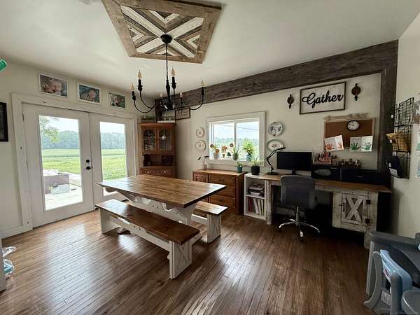 This is a rare opportunity to own a scenic farmstead on 5 acres with the option to buy up to 80 acres in east Hillsdale county. An original farmhouse circa early 1900s that has been thoughtfully updated with much of the wood/beams from the original barns! The 1500 sqft house boasts 4 bedrooms and 1 bathroom with 9' ceilings downstairs. 40x40 new cemented pole barn. Large All metal hoop building. Garden shed with raised beds. Outdoor wood burning stove. Cemented back patio. Stone driveway. Updated Landscaping. Pool. Spacious storage shed. Playhouse/cabin. Chicken coop. Basement. Whether you want a peaceful country homestead or the perfect infrastructure for an agricultural business, you can make it happen here. The house has had numerous updates in the last 2 years including new siding, roof, plumbing, electrical, windows, French doors, entire kitchen, entire bathroom, laundry room, pantry, tankless water heater, water softener, central air conditioning, AND all new appliances that can stay in the residence! Don't miss this opportunity to own a piece of private, rural paradise! $399,000. 5 acres to be split.
