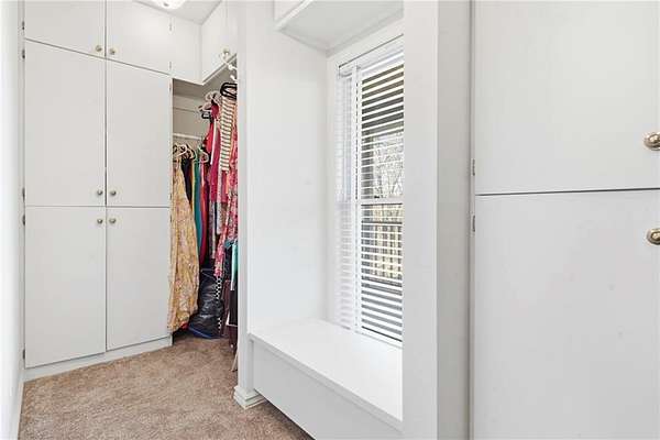 - Blinds, Built-In Ironing Board, Built-Ins, Cathedral Ceiling, Central Vacuum, Ice Maker Connection, Pantry, Smoke Detector, Split Floor Plan, Walk-In Closets, Wired For Sound