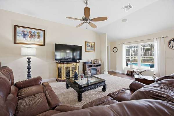 Custom-built by Jim Bennett of Bennett Construction Services Inc, and in conjunction with the original owner, the 2,660 sq. ft. residence is a marvel of "over-engineered" construction as was featured in the Parade of Homes and also in Ocalastyle Magazine in March of 2012. The interior boasts high ceilings and spacious room sizes, anchored by a gourmet kitchen featuring granite countertops and solid oak cabinetry. The master suite serves as a true retreat, complete with huge walk-in closets.