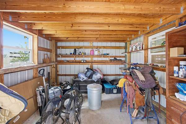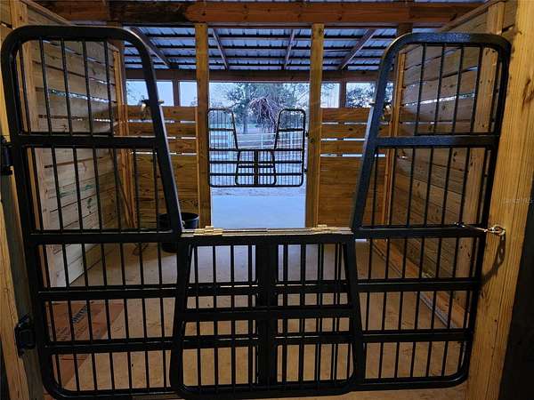 - The Barn: A 50’x64’ custom courtyard-design barn with 18’–24’ ceilings, featuring 4 oversized Euro stalls (expandable to 8) with frost-free auto-waterers and premium interlocking fitted Zion cushioned rubber flooring.