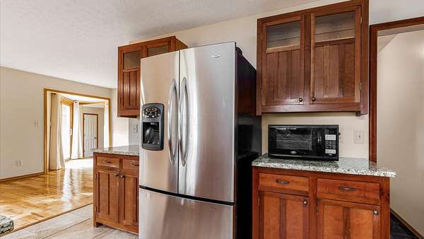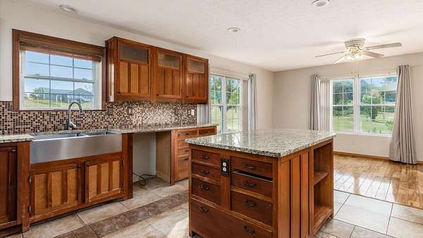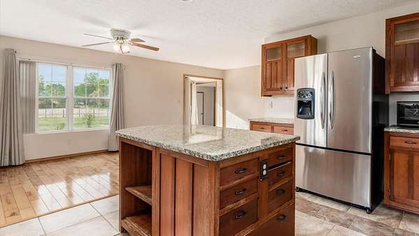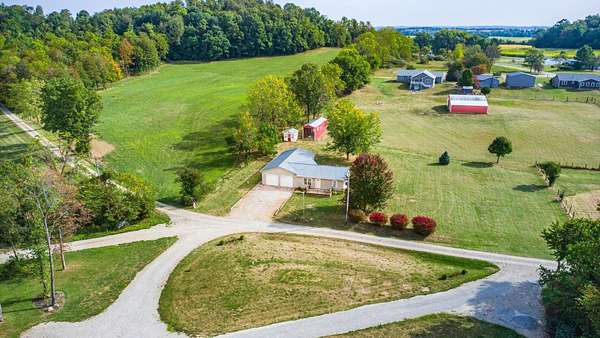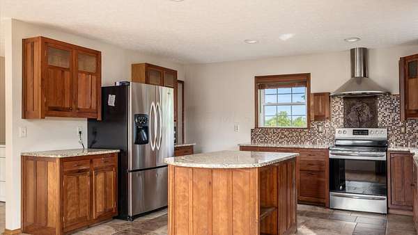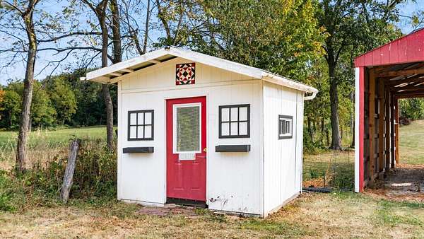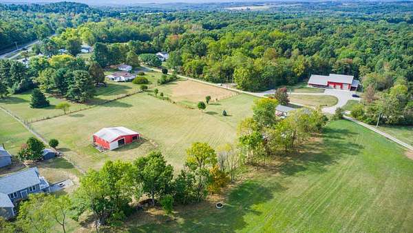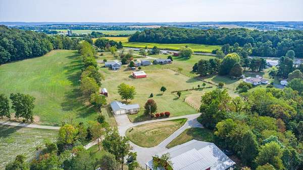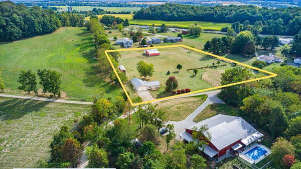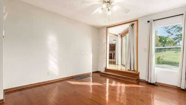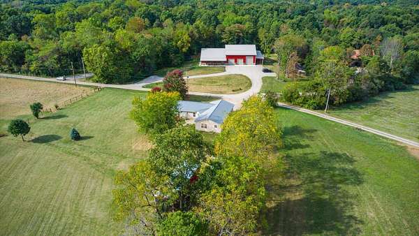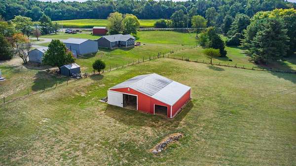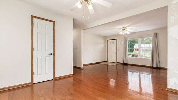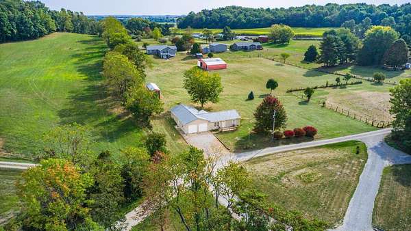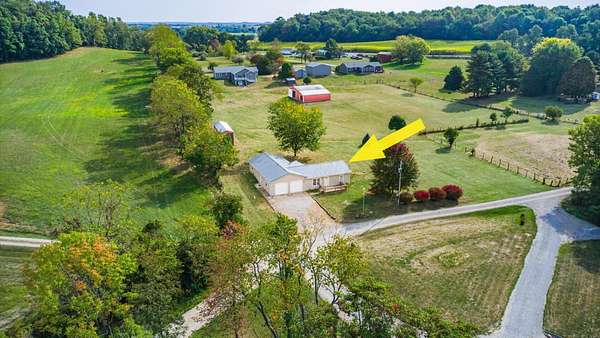 Come see the best country living can offer with this charming ranch home on over 4 rolling acres offering stunning countryside views. You'll have plenty of room for equipment, additional vehicles, toys, farm animals, livestock or a working shop in the large 32X40 pole barn complete with utilities (electric and water) OR the 16X40 covered building perfect for a camper/trailer/boat storage. Finally a cute shed completes the outbuilding storage options. The home features easy one story living with a great open concept layout and gleaming hardwood floors, large kitchen with granite countertops, abundance of custom wood cabinetry, tile backsplash, stainless steel appliances with nicely sized island. Walk in pantry for additional storage. Loaded with light from lots of windows. Two nicely sized bedrooms with large full bath and additional half bath. Great basement with high ceilings can be finished for additional living space. Overlook the beautiful countryside from your back deck. Enjoy the privacy and surround yourself with nature on this one - all while being close to major highways and easy access to Columbus. Spectrum high speed internet is available.