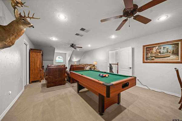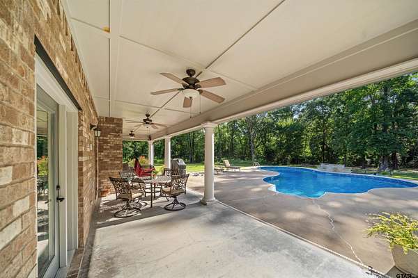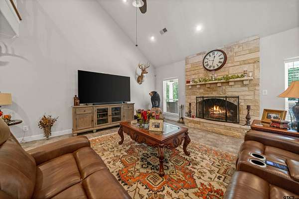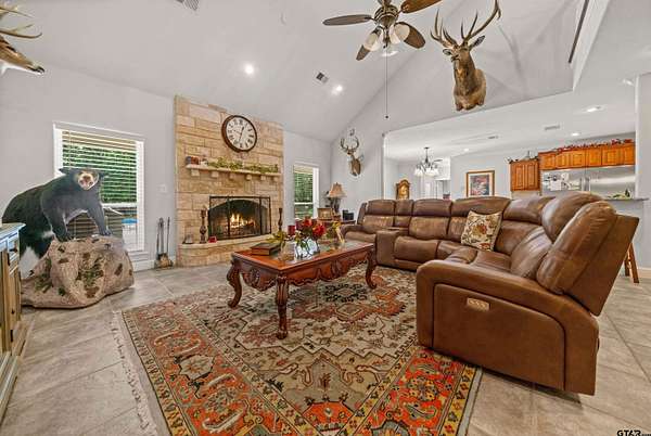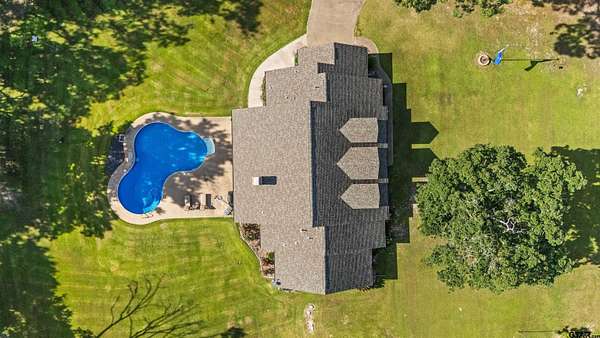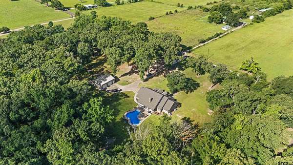 ACREAGE, POOL, SHOP and FULL HOME RENOVATION!! Located on a quiet country road and surrounded by fabulous mature shade trees, this incredible home has been thoughtfully redesigned with no detail left unfinished! Completely fenced with a private electric gate, this stunning retreat will truly take your breath away! New roof, gutters, exterior paint & generator! Step inside to the soaring vaulted ceilings, soothing neutral color pallet and continue to the spacious family room that opens to the immaculate kitchen! Boasting a stately stone, gas fireplace and large windows overlooking your completely private views of nature and pool complete with new liner, auxiliary pump and ladder, what more could you want from a room with a view? Kitchen proudly offers new granite countertops, stainless appliances, gas cook top, double ovens, new microwave and new built in refrigerator and freezer. There is an endless amount of storage offered in this incredible space plus large breakfast bar, breakfast room, formal dining room or could be used as a butlers pantry! Downstairs primary suite is complete with updated bath, brand new shower, fixtures and roomy walk in closet with new safe that will CONVEY! There are two guest bedrooms downstairs plus an updated jack-n-jill bath! Upstairs you will find another guest bedroom with a full bath and the most perfect game room with space for pool table, sofas, media chairs and more! This room could also be used as a 5th bedroom! Don't miss the massive storage closet upstairs! Saving the best for last, step outside to your own oasis! Updated pool, lounge area, covered patio, water feature with completely private nature and deer feeding views from every direction, you will never want to leave this backyard! This property has been meticulously cleared making it perfectly prepared for any buyer intent! Don't forget to walk through the enormous shop perfect for storing your favorite toys! This incredible gem will not last long!