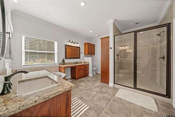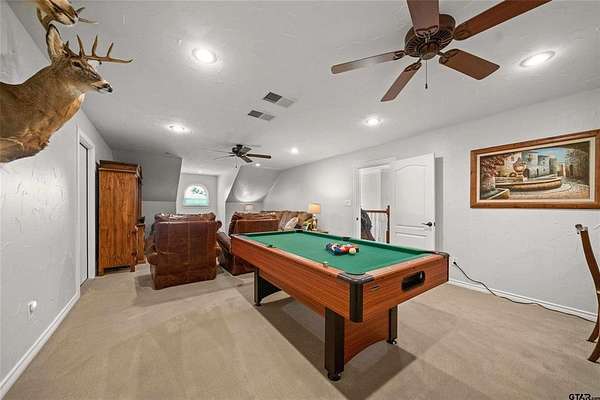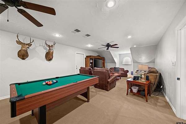 ACREAGE, POOL, SHOP and FULL HOME RENOVATION!! Located on a quiet country road and surrounded by fabulous mature shade trees, this incredible home has been thoughtfully redesigned with no detail left unfinished! Completely fenced with a private electric gate, this stunning retreat will truly take your breath away! New roof, gutters, exterior paint & generator! Step inside to the soaring vaulted ceilings, soothing neutral color pallet and continue to the spacious family room that opens to the immaculate kitchen! Boasting a stately stone, gas fireplace and large windows overlooking your completely private views of nature and pool complete with new liner, auxiliary pump and ladder, what more could you want from a room with a view? Kitchen proudly offers new granite countertops, stainless appliances, gas cook top, double ovens, new microwave and new built in refrigerator and freezer. There is an endless amount of storage offered in this incredible space plus large breakfast bar, breakfast room, formal dining room or could be used as a butlers pantry! Downstairs primary suite is complete with updated bath, brand new shower, fixtures and roomy walk in closet with new safe that will CONVEY! There are two guest bedrooms downstairs plus an updated jack and jill bath! Upstairs you will find another guest bedroom with a full bath and the most perfect game room with space for pool table, sofas, media chairs and more! This room could also be used as a 5thbedroom! Don't miss the massive storage closet upstairs! Saving the best for last, step outside to your own oasis! Updated pool, lounge area, covered patio, water feature with completely private nature and deer feeding views from every direction, you will never want to leave this backyard! This property has been meticulously cleared making it perfectly prepared for any buyer intent! Don't forget to walk through the enormous shop perfect for storing your favorite toys! This incredible gem will not last long!