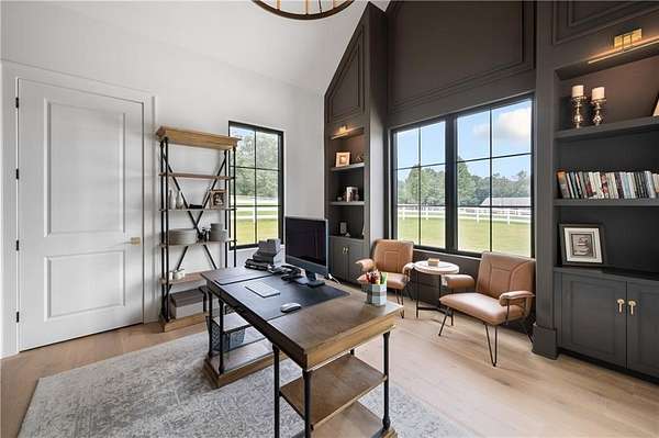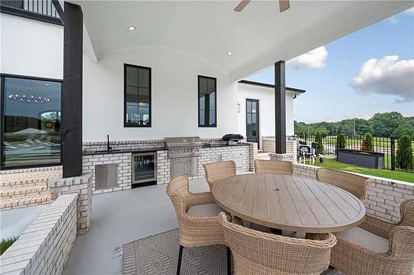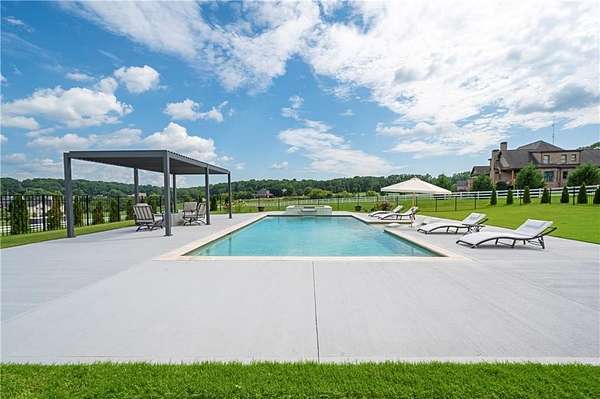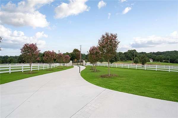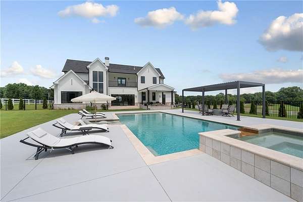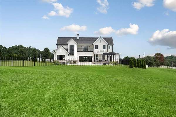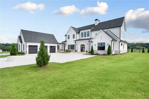 This is truly a MUST SEE "One-of-a-kind", custom-built estate beautifully situated on 4+/- private acres in Auburn, GA. This exceptional property offers 4,441 heated square feet and approximately 6,000 square feet under roof, featuring 5 bedrooms and 4.5 baths with high-end finishes and thoughtful design throughout. The interior showcases soaring ceilings, abundant natural light, and open-concept living spaces. The main-level primary suite features a spa-inspired bath with oversized shower. A dramatic floating staircase leads to spacious secondary bedrooms, a second-story family room with minibar, and access to a private balcony. The chef's kitchen is equipped with paneled Thermador appliances, custom cabinetry, premium countertops, and a custom masonry range hood. Additional interior features include spray foam insulation, engineered hardwood floors, and a whole-home security system. Outdoor living is designed for year-round enjoyment with a heated gunite saltwater pool, oversized spa, and tanning ledge, all controlled via smartphone app. Additional amenities include a covered outdoor kitchen and dining area, natural gas fire pit with louvered aluminum pergola, premium aluminum fencing enclosing the pool and backyard, and 3-rail fencing around the entire property. The estate also includes a 3-car detached garage connected by breezeway, oversized gated driveway with courtyard fountain, and no HOA. The property offers ample space to add a guest house, pool house, or additional detached garages. Conveniently located near top-rated schools, downtown Auburn, Chateau Elan Winery & Resort, I-85, Atlanta Falcons Flowery Branch Complex, approx. 30 miles to downtown Atlanta and approx. 40 miles to Athens Ga.