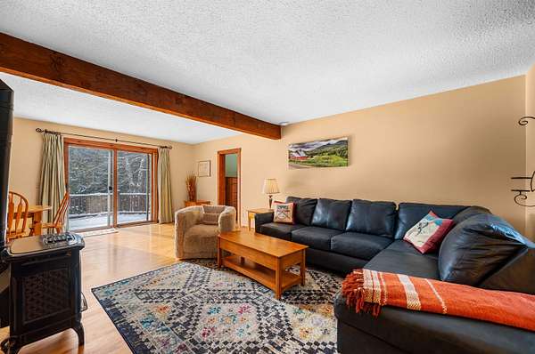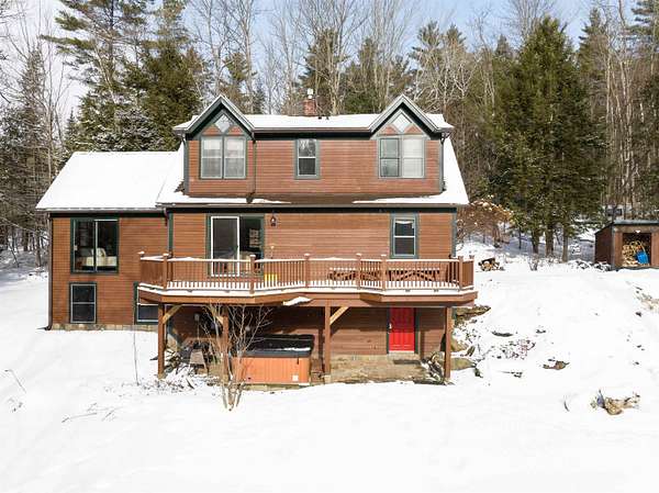Tucked into the coveted Stowe Hollow neighborhood, this 3-bedroom, 2-bath home offers the Vermont lifestyle Stowe is renowned for--ideally positioned between Stowe Village and the Worcester Mountain Range. You're minutes to Stowe's shops and restaurants, close to the Stowe Pinnacle trailhead, and just a 15-minute drive to Stowe Mountain Resort. With 2,192 sq ft of finished living space across 3 levels, the layout is designed for comfort, practicality, and flexibility. The main level delivers true single-level living with a primary bedroom en-suite located just off the living room. Vaulted ceilings and excellent storage create an open, airy feel that lives larger than the square footage suggests. Upstairs, two additional bedrooms, a full bath, and ample storage provide separation and privacy for guests or family. The walkout lower level adds approximately 640 sq ft of finished space, featuring a cozy sitting area with a wood stove plus a bonus room currently used as an office--ideal for a game room, gym, overflow sleeping, or a dedicated work-from-home setup. The remainder of the lower level is a workshop, perfect for ski tuning, gear storage, and projects, or future finishing to suit your needs. Step outside to the hot tub, thoughtfully positioned beneath the balcony for added cover--an easy, four-season way to unwind. Recent updates include a brand-new on-demand hot water heater and a thermostatically controlled propane stove in the living room for efficient, comfortable heat. Outside, enjoy the privacy of 3.27 acres, with room to spread out and a setting that feels quintessentially Vermont. Take in mountain views from the balcony, relax after a day on the slopes, and appreciate the combination of location, amenities, and flexible space--well-suited for full-time living, a second home, or rental potential in one of Stowe's most desirable areas. Showings begin Friday January 16.