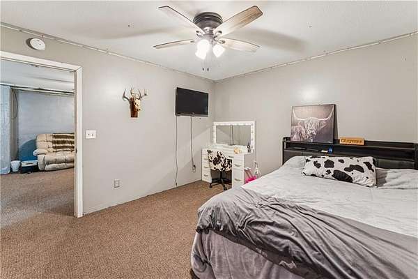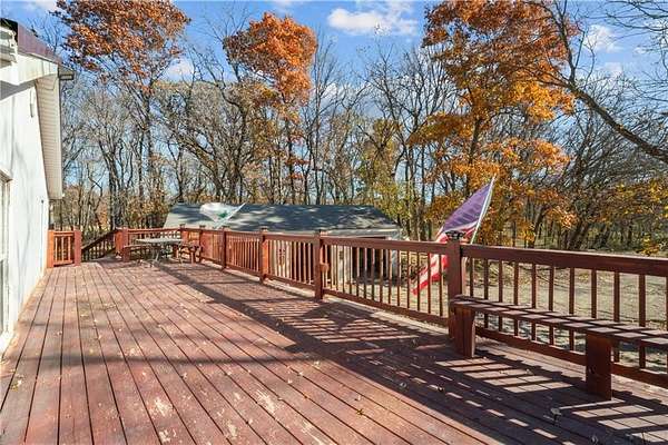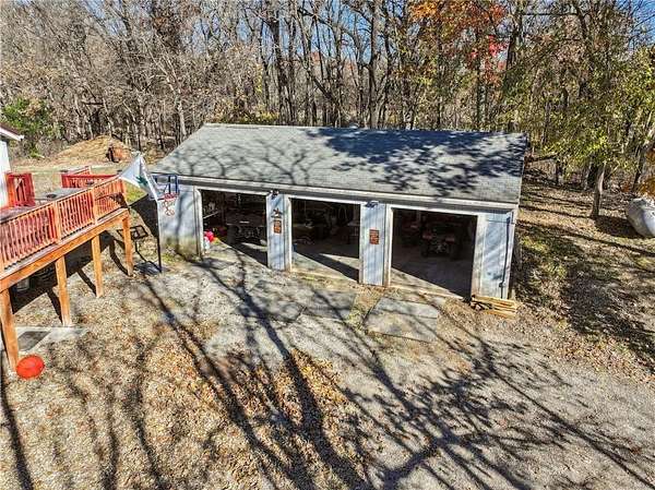 This inviting property offers comfort, space, and a peaceful country setting just one mile from town. The home features an open floor plan, pellet wood heat, and electric A/C for efficient year-round living. With 3 full bathrooms and 4 bedrooms, one is a non-conforming bedroom in the walkout basement, there is plenty of room for family, guests, or flexible use. Outdoor living shines here, with a 900-square-foot wraparound deck on two sides and a covered deck on the north side, creating several great spots to relax and enjoy the view. The property is horse-ready with a fenced paddock, and mature trees add privacy and charm throughout the acreage. Inside, the primary suite features a spacious custom shower with a rain shower head. The main level includes two full baths for convenience. The walkout basement features a large family room with a pellet stove, ideal for cozy evenings or gatherings. A 22x40 detached three-car garage and shop with electric provides excellent storage and workspace options. This property offers a balance of country living and quick access to town. It is ready for its next owner to make it their own.