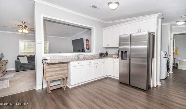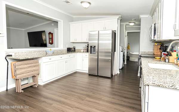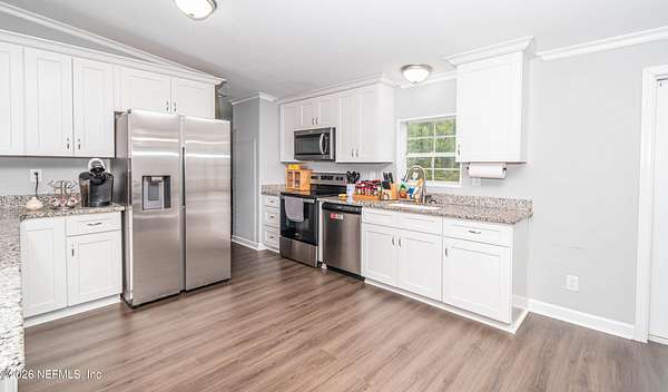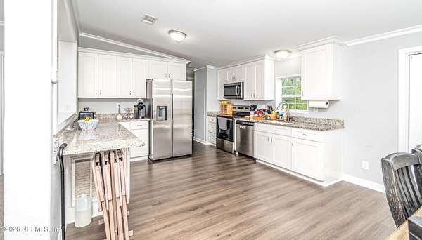 WELCOME HOME to this beautifully renovated property in Glen St. Mary offering space, privacy, and modern comfort on 3.5 acres. Tucked away at the end of a picturesque winding driveway, this 3 bedroom, 2 bathroom home welcomes you with a peaceful setting and thoughtfully updated interior. Renovated in 2021/2022, the home features gorgeous flooring throughout and a bright, inviting layout designed for both everyday living and easy entertaining. The stunning kitchen serves as the heart of the home, complete with modern finishes, ample cabinetry, and generous counter space - perfect for preparing meals or gathering with guests. Step outside and enjoy the freedom of 3.5 acres, offering endless possibilities for outdoor living, recreation, or simply enjoying the quiet surroundings. A detached, 12x30 detached workshop (currently used as a ''man cave'') includes a pool table and provides flexible use for hobbies, a game room, office, or creative space. It also includes additional storage on the opposite side of the detached building, adding even more functionality. (Workshop has aluminum frame.) If you've been searching for a move-in ready home with acreage, privacy, and updated features in a peaceful North Florida setting, this property is a must-see. Schedule your showing today and come experience the charm and space this Glen St. Mary property has to offer. *Generac Generator & Pool Table convey with home.