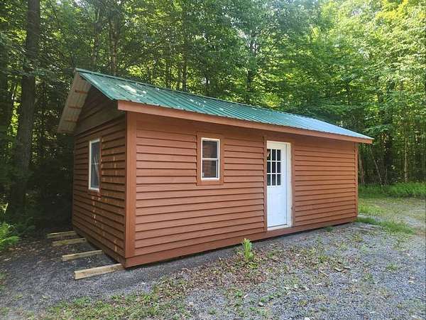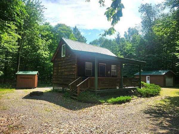 This finished off-grid 16 x 20' "Classic-style" cabin is neat and ready to move in for fall hunting and/or snowmobiling season. Located on scenic Balsam Creek amidst hardwood forest, this camp provides the perfect setting for four seasons of recreational use. The cabin features an open floorplan downstairs and a sleeping loft upstairs with white pine interior. A propane heater and woodstove provide heat on chilly nights. A garage, equipment shed and an outdoor shower house are also included. The property has a gravel driveway and is located on a seasonal road near Balsam Creek State Forest. Close to the Adirondacks with many lakes and ponds nearby for fishing and boating. Also direct access to ATV and snowmobile trails for year-round outdoor fun.