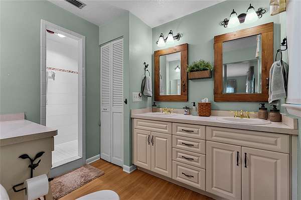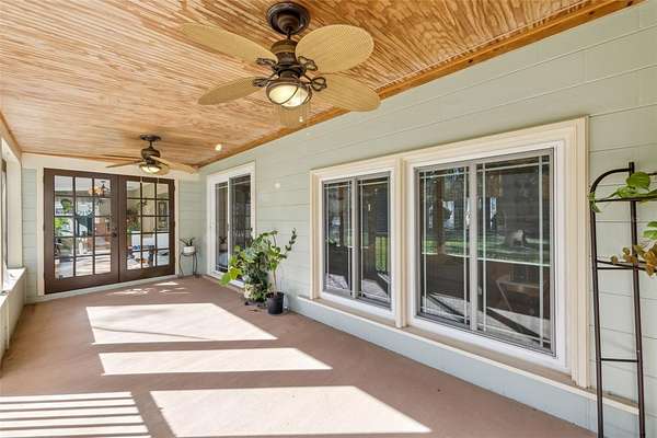 Throughout the home you'll find wood floors, vaulted ceilings in the main living areas, neutral finishes, upgraded windows and doors, solar tubes, and recessed lighting. The guest bathroom has been completely remodeled, while the primary suite features two closets, a bath with dual sinks and a walk-in shower, and a French door leading to the screened porch -- the perfect spot to enjoy your morning coffee.