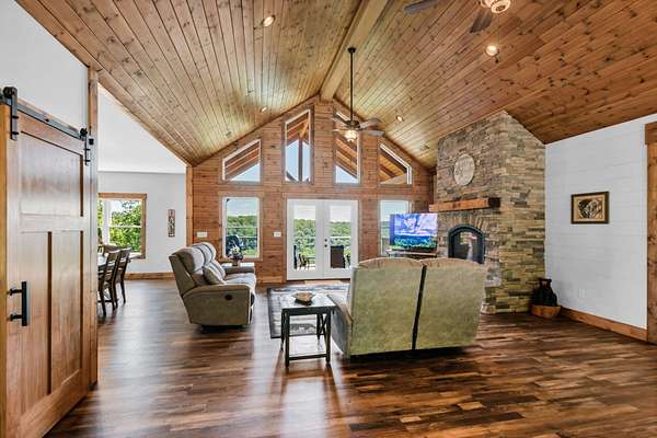 Come check out this beautiful Center Hill Lake retreat, and move in before summer! This gorgeous custom home offers over 4,100 square feet of luxurious living space and uninterrupted year-round views of the lake from every room in the house. Step inside the main level to find a spacious, open floor plan consisting of custom cabinets, granite countertops, a large dining room and walk-in pantry, vaulted tongue and groove ceilings giving a mountain feel, a gas fireplace, as well as a large, covered porch overlooking the lake. Meanwhile, the downstairs level consists of a large bonus room with another fireplace, plumbing and electrical rough-ins for a kitchenette or wet bar, another large covered porch with a view of the lake, a storm shelter, as well as an oversized two-car garage. The outdoor living is equally impressive boasting three separate porches offering multiple spots to entertain or enjoy your morning coffee while soaking in the view and overlooking the lake, sunrise, and wildlife. It is perfectly positioned just minutes from Hidden Harbor Marina for boating, Tennessee Core land for hunting, local Smithville schools, restaurants, and entertainment, and only one hour away from the Nashville Airport making this home the ideal blend of peaceful lakeside living and convenient access to amenities and recreation. Come take a look at this beautiful home before it’s gone!